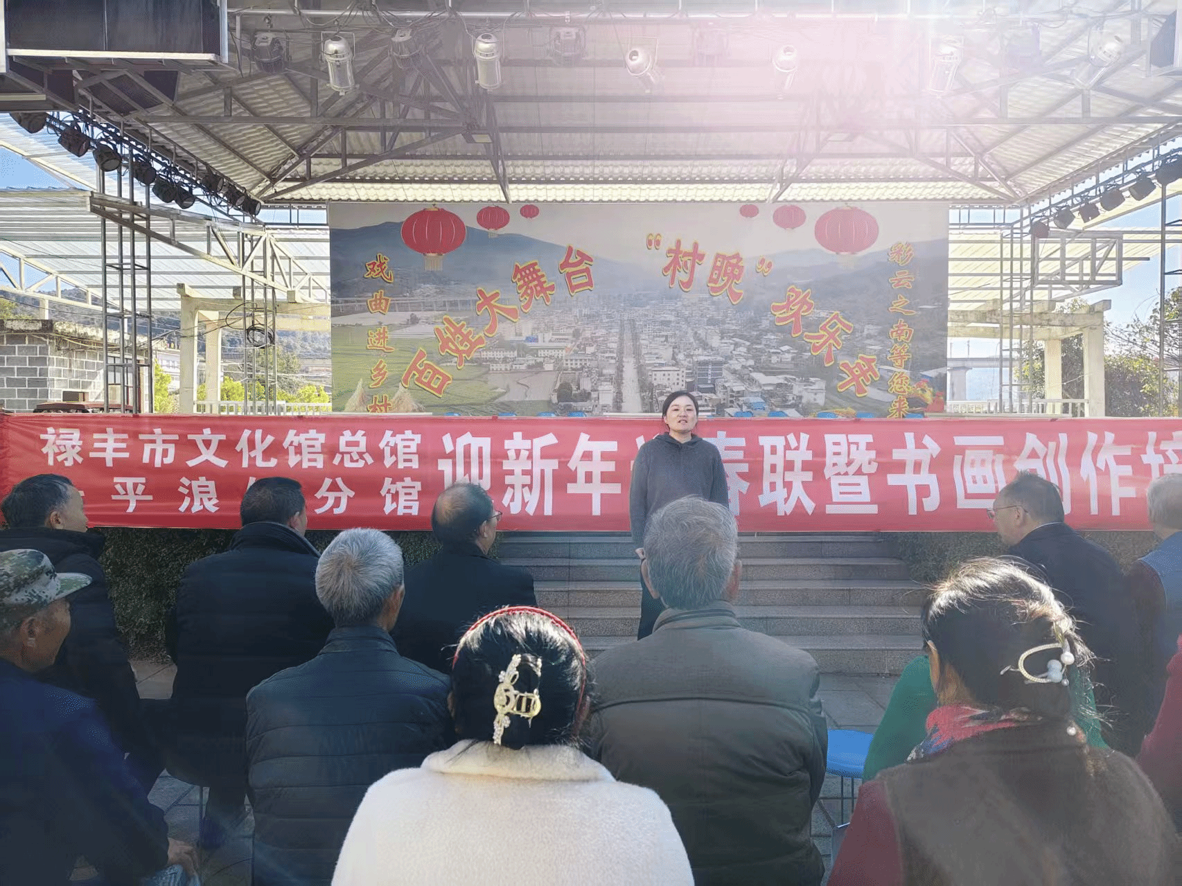 2025年12月20日上午9点,一平浪镇文化广场的空气中,弥漫着喜庆的暖意。以“我的中国梦—文化进万家”为主题的禄丰市文化馆总馆、一平浪镇分馆主办的彝族年“迎新年・送春联”暨书画培训班活动,正热热闹闹地拉开帷幕。