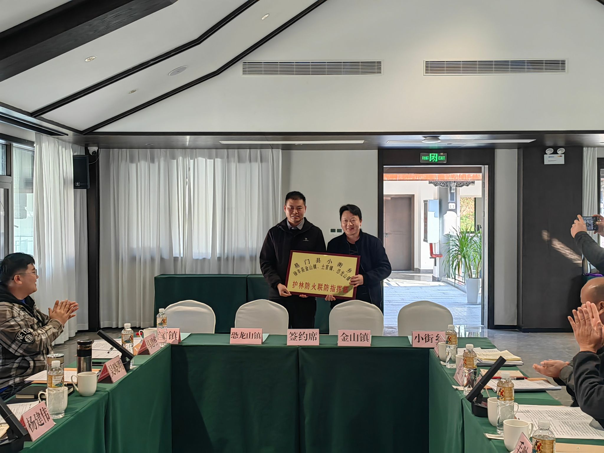 会议由恐龙山镇人民政府镇长吴晓明同志主持并对过去一年的工作进行了总结。会上,恐龙山镇与金山镇顺利完成了联防值班交接仪式,交接完成后,新任值班单位金山镇副镇长杨建林对2026年度的联防工作进行了初步安排和部署。在与会人员的共同见证下,四个乡镇主要负责人签署了新一年的《森林草原防火联防协议》,这标志着四乡镇在森林草原防灭火工作上的协作关系得到了进一步巩固和深化,展现了各方携手共筑绿色长城的坚定决心。