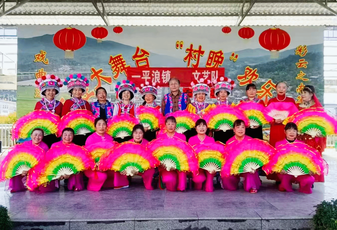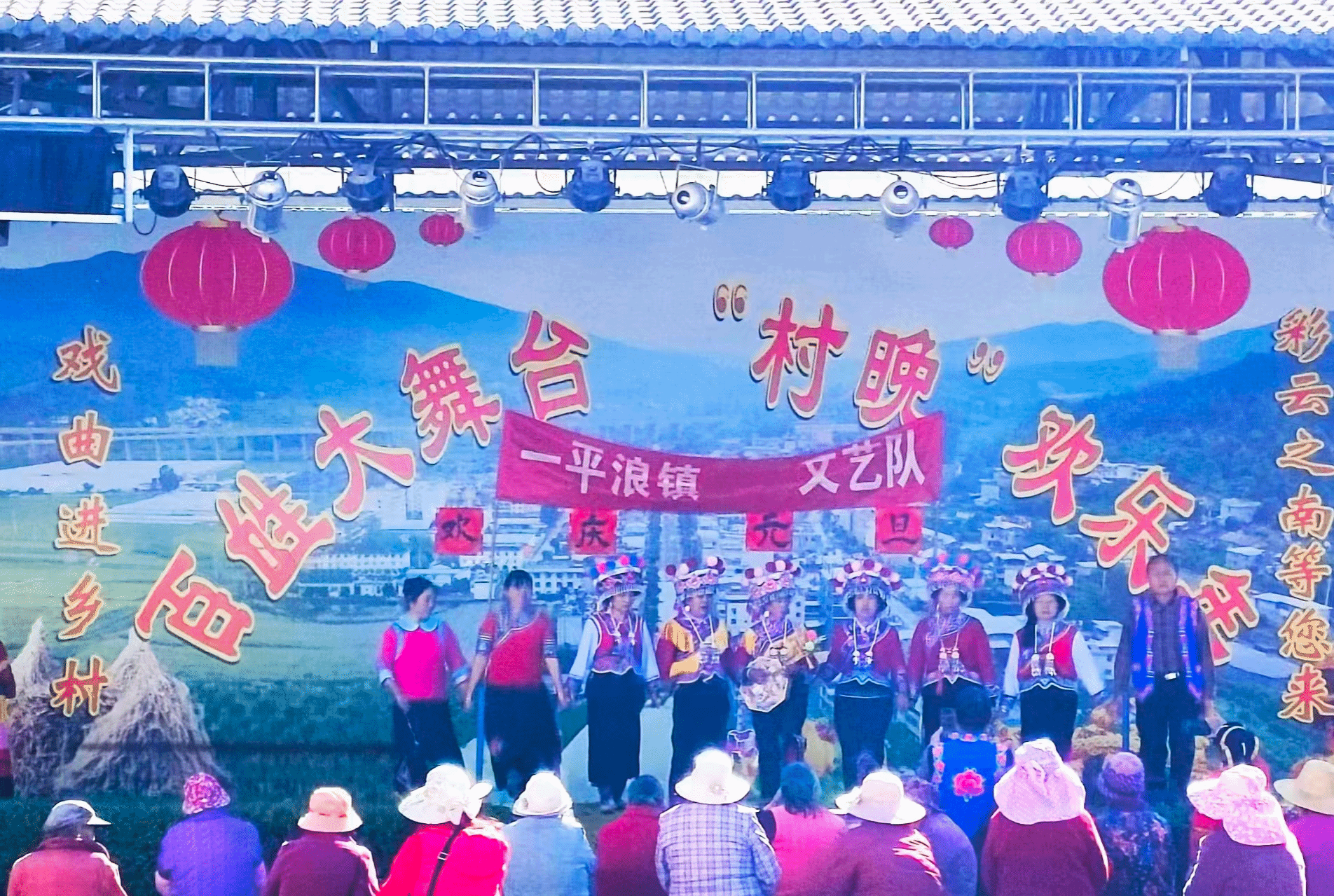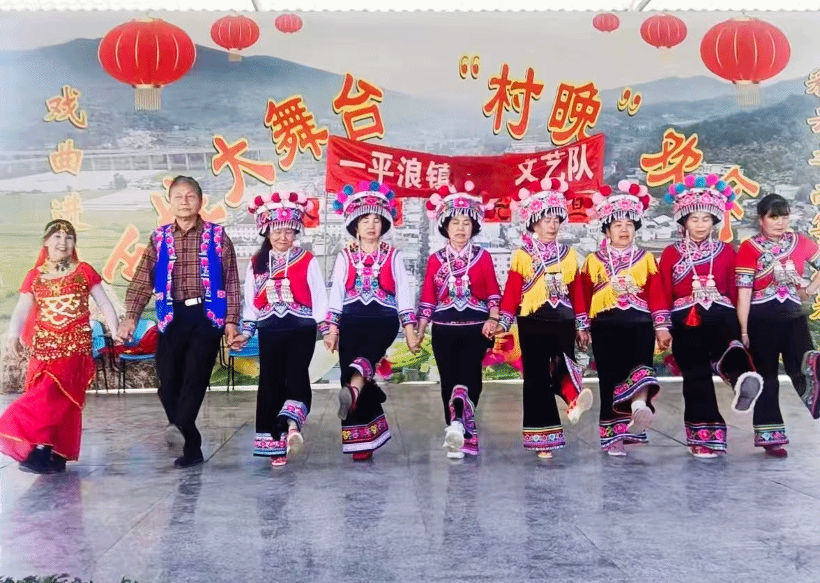伴随着慷慨激昂的旋律,开场舞《各族人民唱新歌》率先登场,瞬间点燃现场气氛。舞者们身着艳丽服饰,舞步奔放洒脱、身姿灵动矫健,每一个动作都饱含着对新年的美好期许,寓意着新的一年里一平浪镇蓬勃向上、欣欣向荣的发展态势。紧接着,形式多样的节目轮番亮相,精彩目不暇接。婉转悠扬的花灯歌舞,将地方传统文化的韵味展现得淋漓尽致;独具风情的藏族舞,以优美的舞姿和鲜明的民族特色,让观众领略到雪域高原的独特魅力;而作为当地传统项目的跌脚表演,更是将演出推向高潮,表演者们默契配合、踏歌起舞,欢快的节奏、热烈的氛围感染着在场的每一位观众。