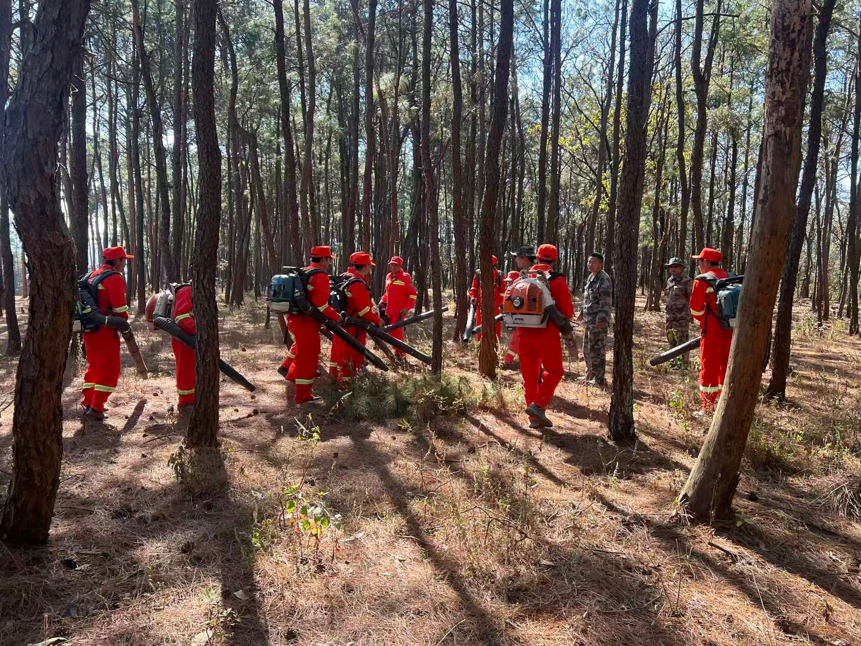 此次演练紧扣实战需求,聚焦两种核心灭火方式开展实操,全程摒弃形式化流程,突出针对性与实效性。演练伊始,风力灭火实操环节率先展开,模拟群众野外违规用火引发森林火情,火势随气流快速蔓延。现场指挥员精准研判风向走势,迅速划定扑救范围、明确作战分工,消防员与护林员协同联动,手持风力灭火机对准火焰根部精准作业,高效压制明火、吹散余烬,成功遏制火情扩散,充分发挥了风力灭火机操作便捷、机动性强、适配中低强度火情的优势。