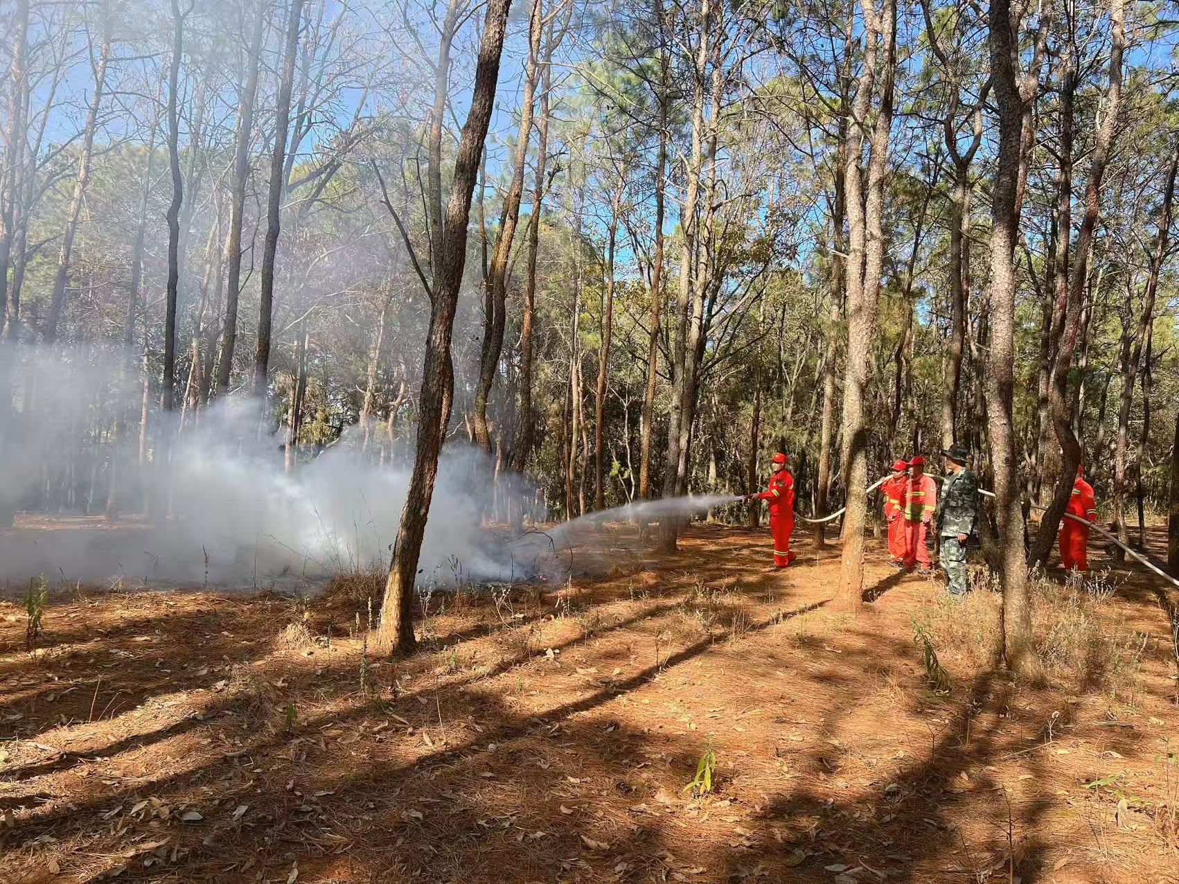 演练全过程,各参演人员反应迅速、配合默契,严格遵循操作规程开展扑救作业。从火情上报、队伍集结、战术部署,到明火扑灭、余火清理,全流程紧张有序、衔接顺畅。火情扑灭后,全体人员对火场进行拉网式排查,彻底清除烟点、余烬,同步安排专人定点值守观察,坚决防范死灰复燃,确保火情处置闭环管理、不留死角。