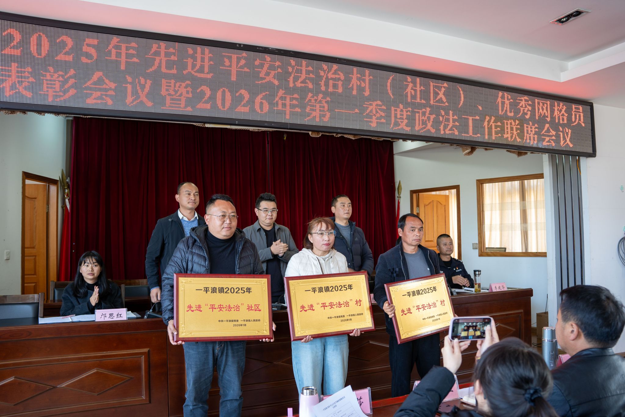 为及时有效防范、排查、化解岁末年初影响社会治安的风险隐患,全面总结过去一年全镇政法工作成效和分析当前社会治安形势,1月19日,一平浪镇召开了2025年先进平安法治村(社区)、优秀网格员(哨长)表彰会议暨2026年第一季度政法工作联席会议。镇党政班子成员、政法单位人员、各办公室、中心(队)含双管单位负责人及股所级干部、15个村(社区)书记(主任)、31名优秀网格员、相关站所工作人员参加会议。