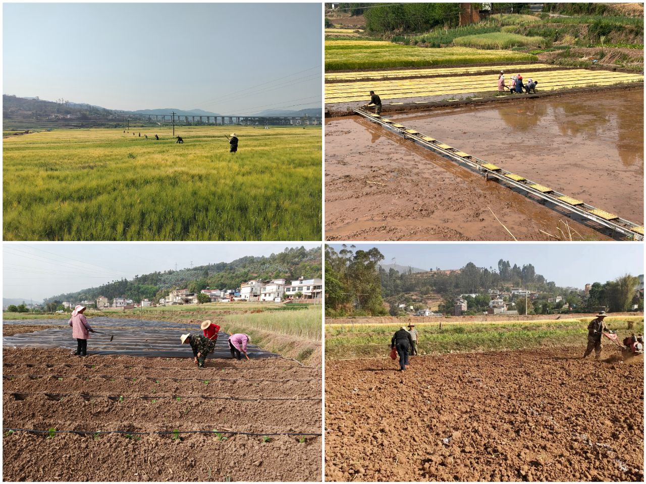 不误农时不误春,春耕生产如火如荼。一是小春收割再齐一点。正值春耕时节,一平浪镇的田间地头到处都是忙碌的身影,农用机械的轰鸣声在田野中回响,镇村干部帮助农户收割小春作物,绘出美丽的春耕画卷。二是水稻育秧再好一点。节日期间,秋木园村河西坝子机插秧育苗基地仍在村“两委”的带领下如火如荼地忙碌着,目前已完成育秧5万盘,可播种面积1700亩。三是烤烟整地再快一点。全镇干部和广大烟农抢抓节令,掀起烤烟预整地移栽高潮,严格把握“4月30日前整完地”时间节点,加快烤烟整地移栽工作进度,确保在5月10日前高质量完成全镇7200亩烟叶移栽任务。