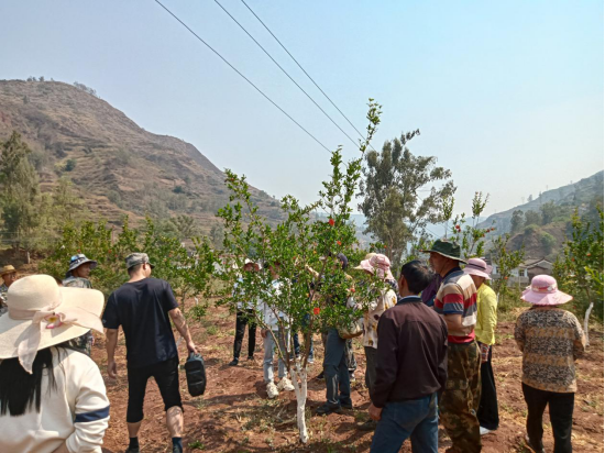 通过实地操作培训学习,三合村党总支书记杨丽梅表示:村党总支将以党建引领为契机、以党员为表率,村两委成员分头下沉到种植石榴的各村组地块,指导、督促、帮助群众抢抓时间节令,抓好石榴产业的果园管理工作,力争石榴产量达到稳产、丰产。待石榴成熟后,继续利用好电商平台帮助群众把本地生产的优质软籽石榴销往各地,让石榴成为支柱产业。