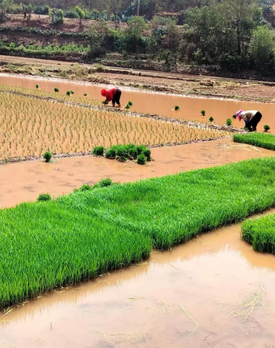 “我们法龙村委会龙骨甸村的田都是在龙川江沿岸,光照好,气温高,抽水泡田方便,水稻移栽也比其他地方要早。今年我家计划种植水稻8亩,现在已经全部移栽完成,预计产量在5000公斤,收入达18000元。”黑井镇法龙村委会龙骨甸村村民杨发武介绍。