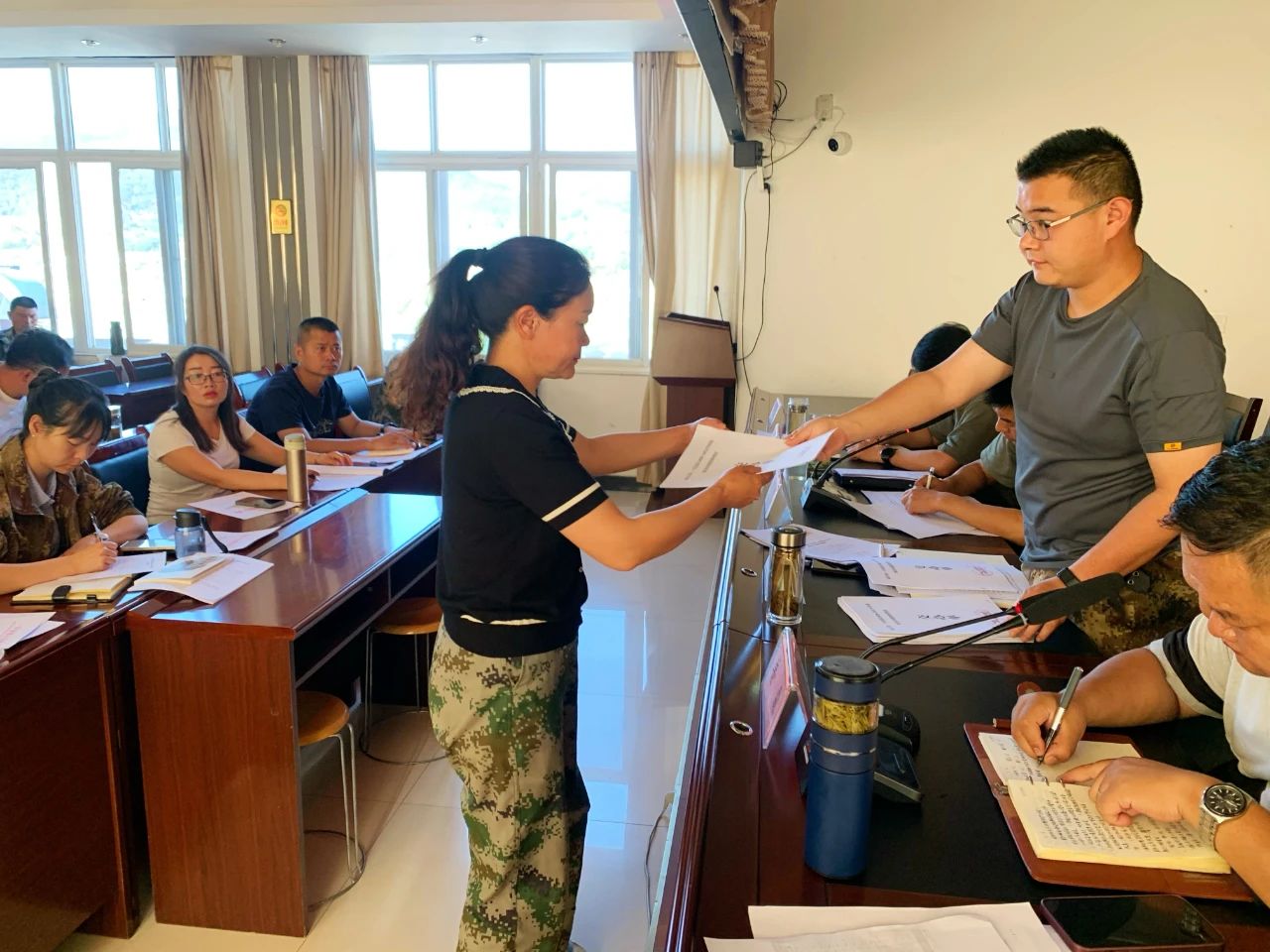 会议传达学习了省、州、市耕地保护工作会议及省自然资源厅有关文件精神;通报了全镇2020——2022年耕地保护情况;镇党委副书记、镇人民政府镇长钱小冉向各村(社区)交办了《耕地流出问题清单》;镇党委书记晁彬与各村(社区)签订了《耕地保护军令状》;部分站所、村委会作了表态发言;认真分析了我镇耕地保护工作面临的形势,研究部署下一步工作,推动耕地保护工作落实落细。