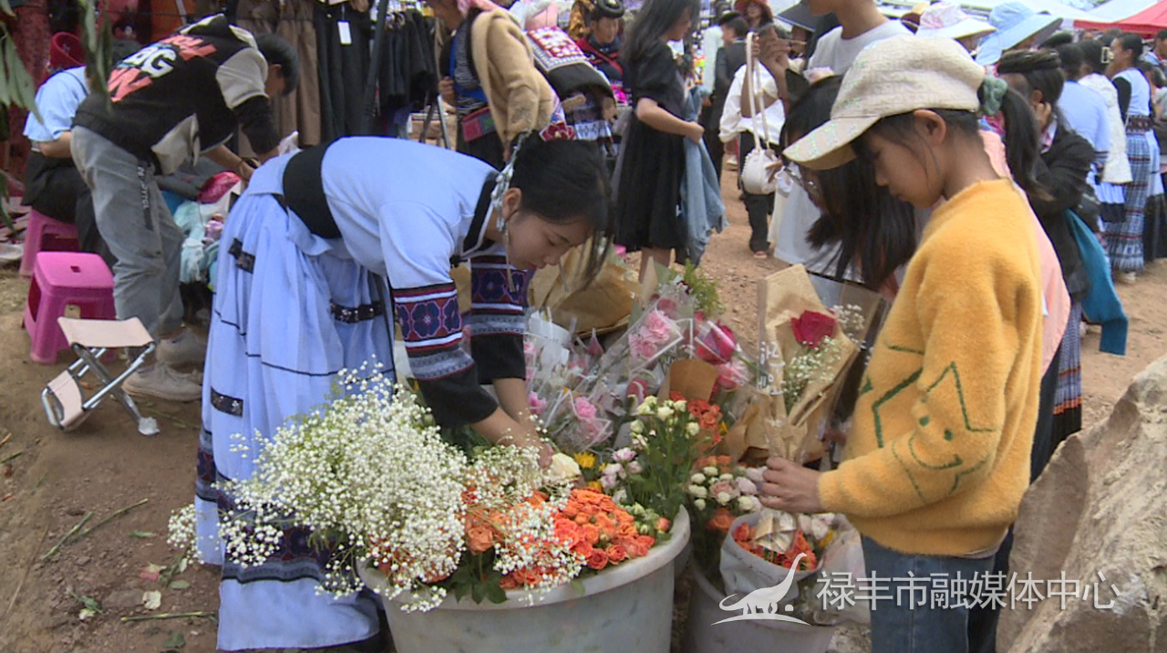 活动会场还设有特产街和美食街,游客们三五成群,品尝特色汤锅,选购特色商品。一平浪镇杞栽村委会商户说:“以前我都是在外面打工,这次回来听说要搞这个节日,我们就进了一些花回来卖,现在花都差不多卖了一半了,收入有一千多元了。”