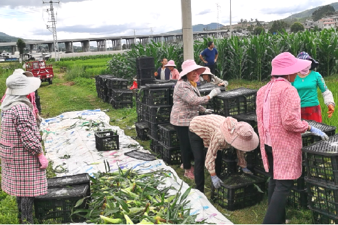 当下正是甜玉米上市季节,禄丰市一平浪镇的15000亩甜玉米喜迎丰收季,不少村民正忙着进行玉米采摘和装车。