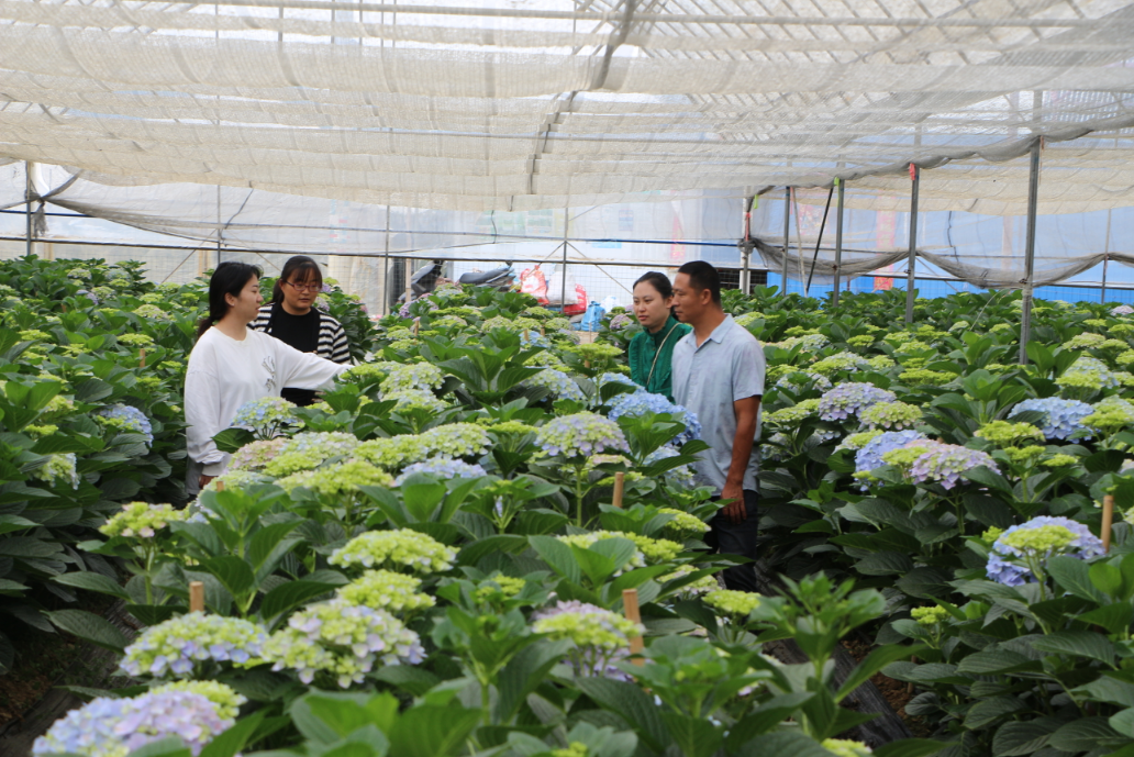 张丙生介绍,当地土壤和气候适宜种植海蓝绣球花品种,花的直径一般10厘米以上,花期长达2个月,这段时间内花色会不断变化,极具观赏性。单株每年可采摘7至8枝花,每枝花价5至10元,年销售额170万元以上。如今,昆明斗南花市及周边县市客户都找上门来订购,随着订单增多,务工群众也陆续增加,除固定用工外,季节性务工增加到30余人。
