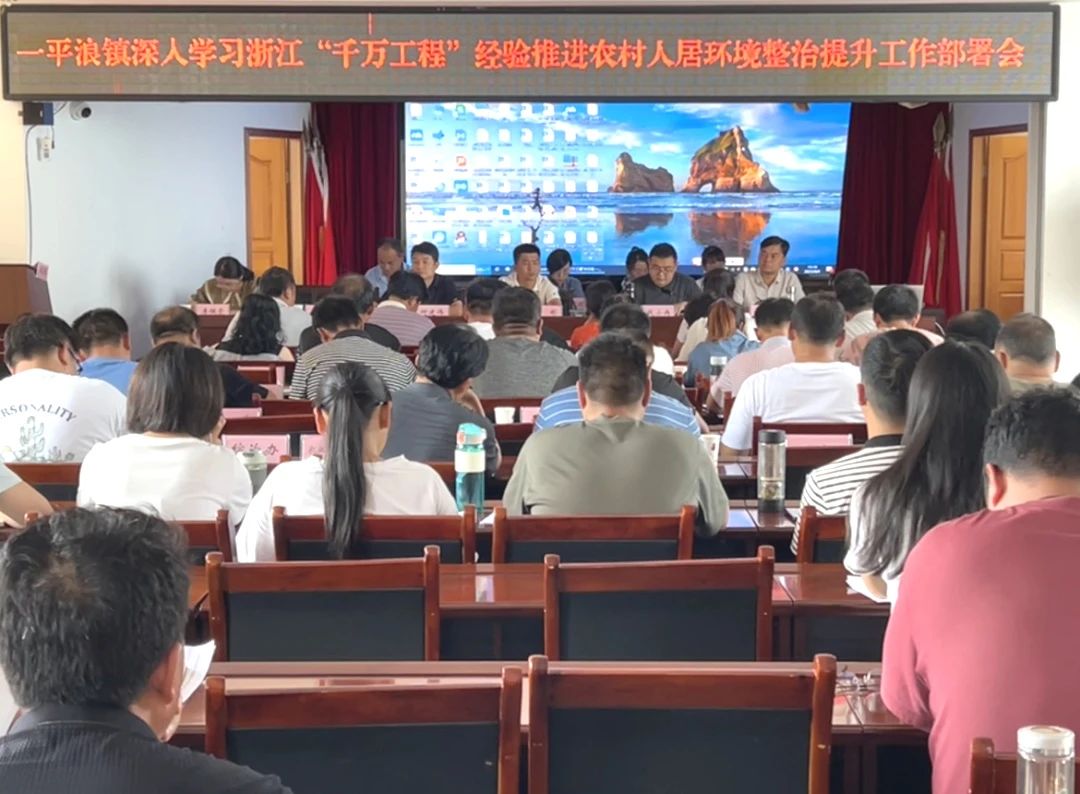 为全面贯彻落实党的二十大精神,深入学习推广浙江“千万工程”经验,扎实推进农村人居环境整治工作,8月3日下午,一平浪镇召开深入学习浙江“千万工程”经验推进农村人居环境整治提升工作部署会。镇党政班子成员、各站所负责人、15个村(社区)书记、主任、扶贫专干、全体驻村工作队员及镇农业农村服务中心全体干部共90余人参加会议。