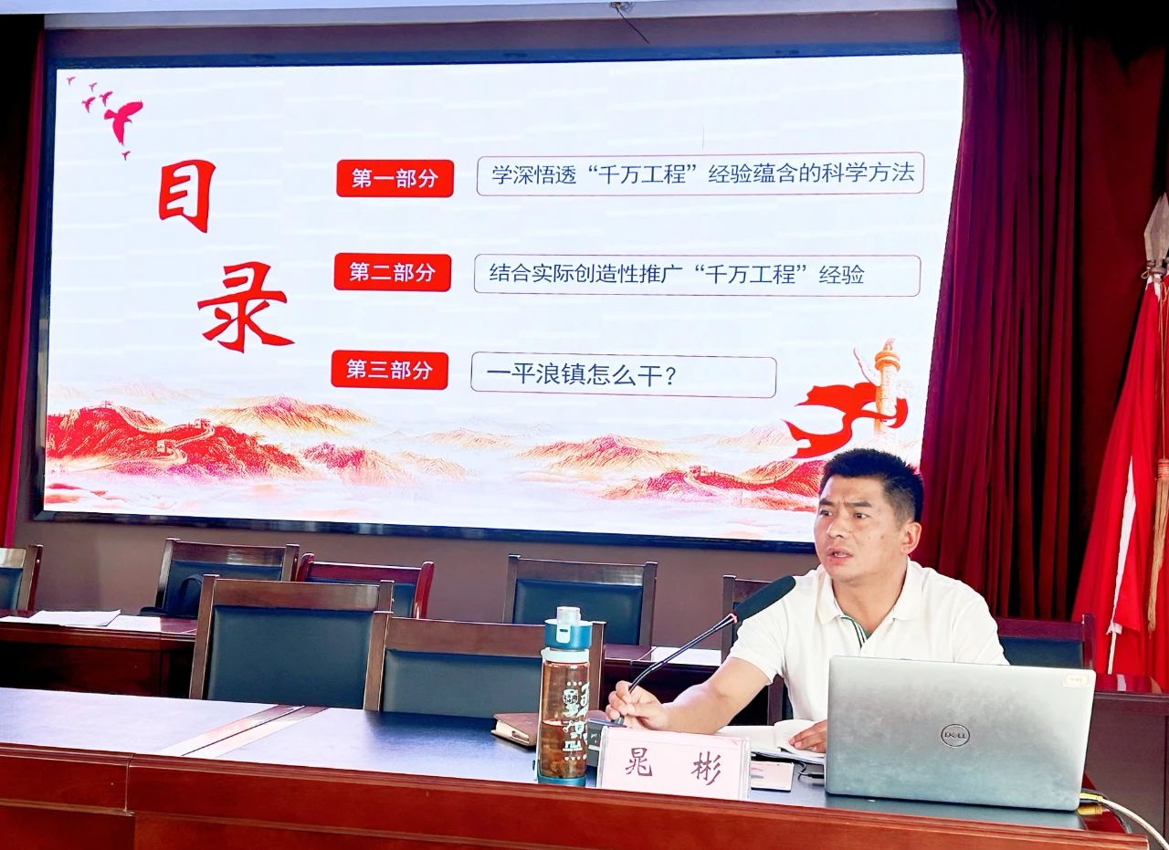 镇党委书记晁彬结合深入学习浙江“千万工程”经验扎实推进农村人居环境整治提升专题研修班学习经验,围绕“千万工程作示范,一平浪镇怎么干”主题,从学深悟透“千万工程”经验蕴含的科学方法、结合实际创造性推广“千万工程”经验及一平浪镇怎么干三个方面作了深入交流,就解决“谁来干”,钱从哪里来,农村卫生户厕覆盖率低、难推进,污水如何根治,农村生活垃圾难处理,绿美乡村如何打造,和美乡村如何管理七个方面的问题提出有效指导意见,明确了工作思路及工作方向。