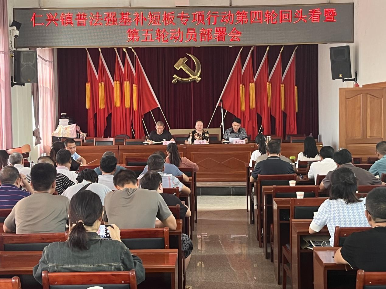 为打好普法强基补短板专项行动外出务工人员和农村“三留守”人员普法攻坚战,聚焦普法工作队第五轮下沉任务,9月11日,仁兴镇召开普法强基补短板专项行动第四轮工作总结暨第五轮动员部署会。