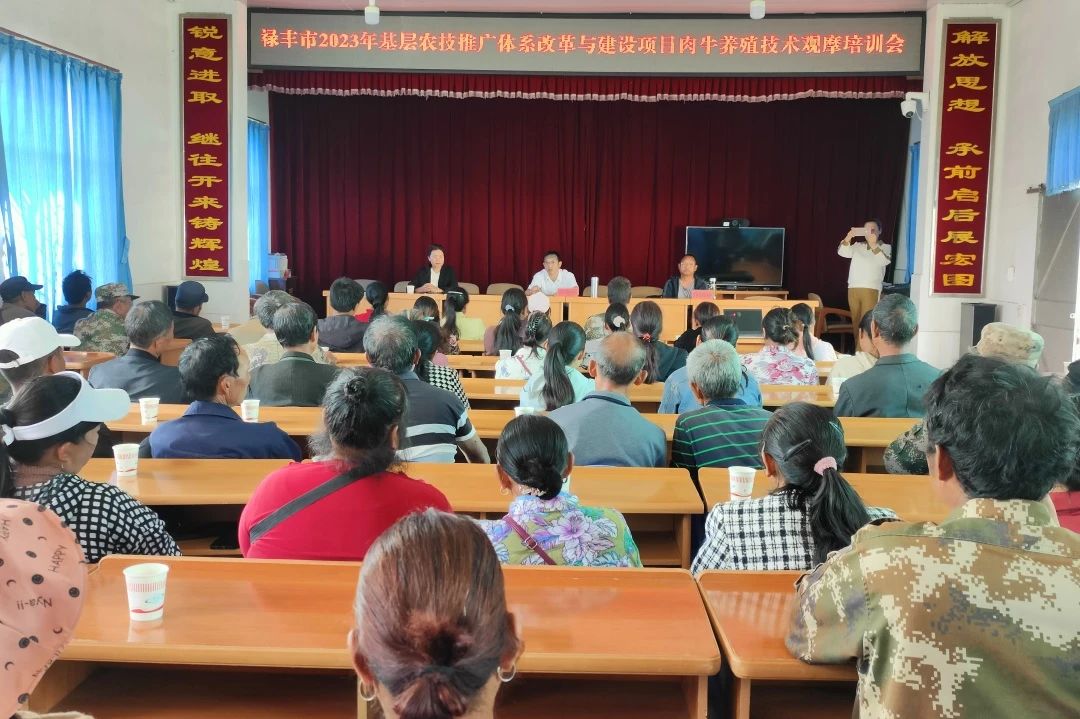 禄丰市动物疾病预防控制中心主任王建平围绕肉牛繁殖、饲养管理、疫病防治及如何降低饲养成本等有关内容进行培训,培训现场与现场养殖户交流养殖心得、养殖思路、养殖方法。
