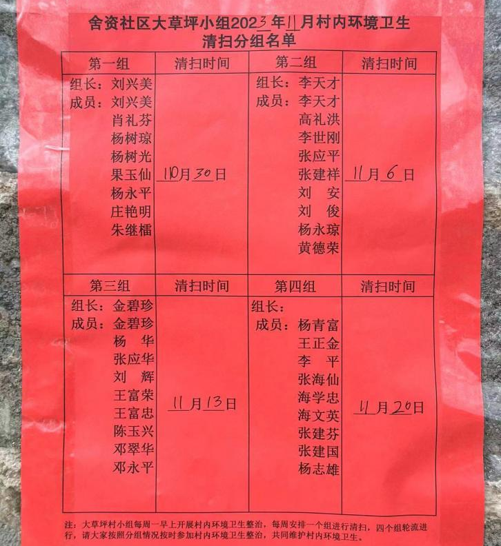 建立长效运行机制,干群合力推动农村人居环境整治工作常态化。确定每周二为人居环境整治提升日,下乡工作组全员下沉到村组参与农村人居环境整治,村组干部积极发动群众参与村间卫生清洁,对村内主干道、村庄房前屋后、河道沟渠进行杂草、垃圾清理并集中清运,对乱搭乱建、乱堆乱放进行集中整治。11月来共发动4000余名群众参与到人居环境整治,逐步由“干部干,群众看”转变为“群众主动干”的良好局面。同时,建立环境卫生清扫轮值制度,各村(社区)针对各村小组实际制定环境卫生清扫轮值名单并上墙公示,制度化常态化抓好人居环境整治提升工作。