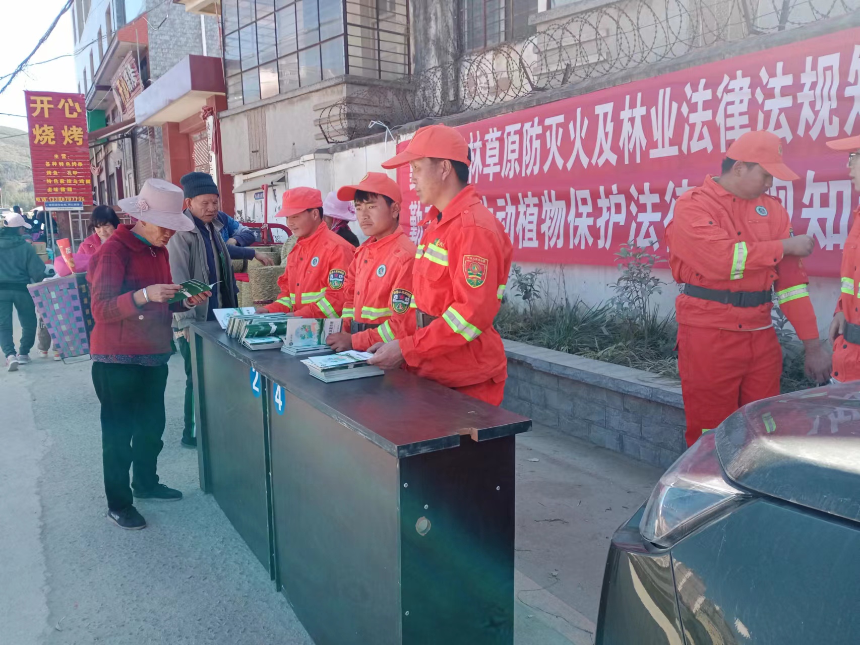 在宣传活动中,工作人员通过利用赶集天,到集市上派发防火资料,护林员开着悬挂宣传标语的摩托车、手提大喇叭、深入田头、土边、集镇、三岔路口等有流动人员多的地方进行森林防火法律法规和扑救安全常识宣传。车载喇叭在街道循环播放森林火灾的预防和相关规定条例,最大限度做到森林防火全民参与,营造良好的森林防火宣传氛围。
