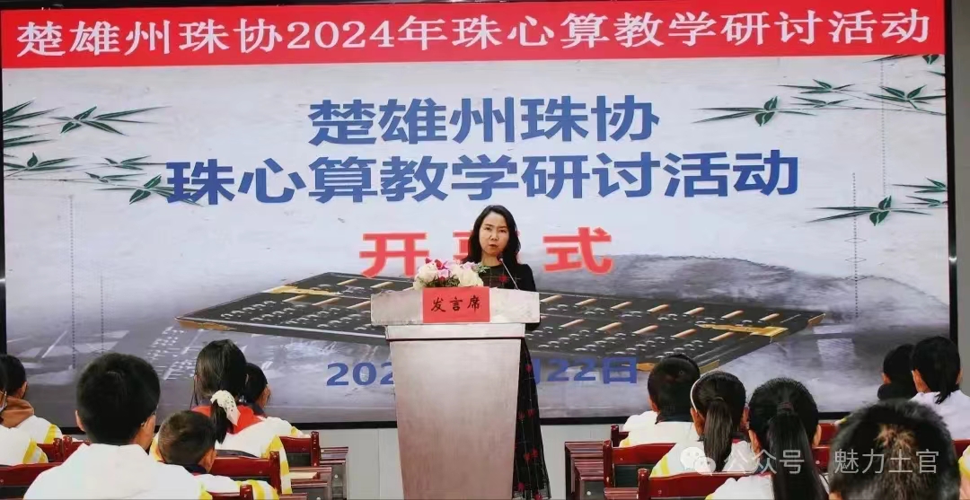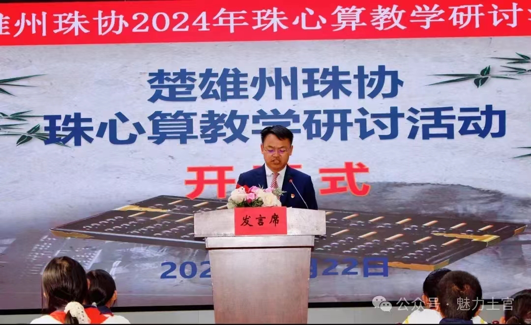 开幕式上,楚雄州珠协副秘书长何晓红致辞。她全面总结了近年来楚雄州珠心算工作取得的优越成绩,充分肯定了珠心算工作者们在推广珠心算工作方面取得的成果,鼓励珠心算工作者们要继续发扬勤于钻研、善于思考、开拓进取、努力创新的精神,推动我州珠心算工作向好发展。同时,她也真诚地期望学生能在方寸算盘间探索数学的奥秘、感受知识的美妙,投身于对真理和知识的追求。