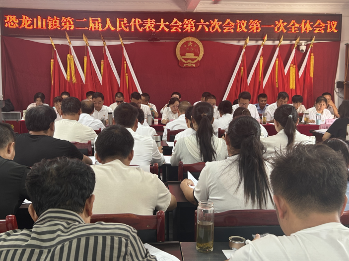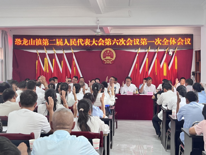 下午2时,恐龙山镇第二届人民代表大会第六次会议在全体与会人员奏唱中华人民共和国国歌声中开幕。开幕式后举行了第一次全体会议。