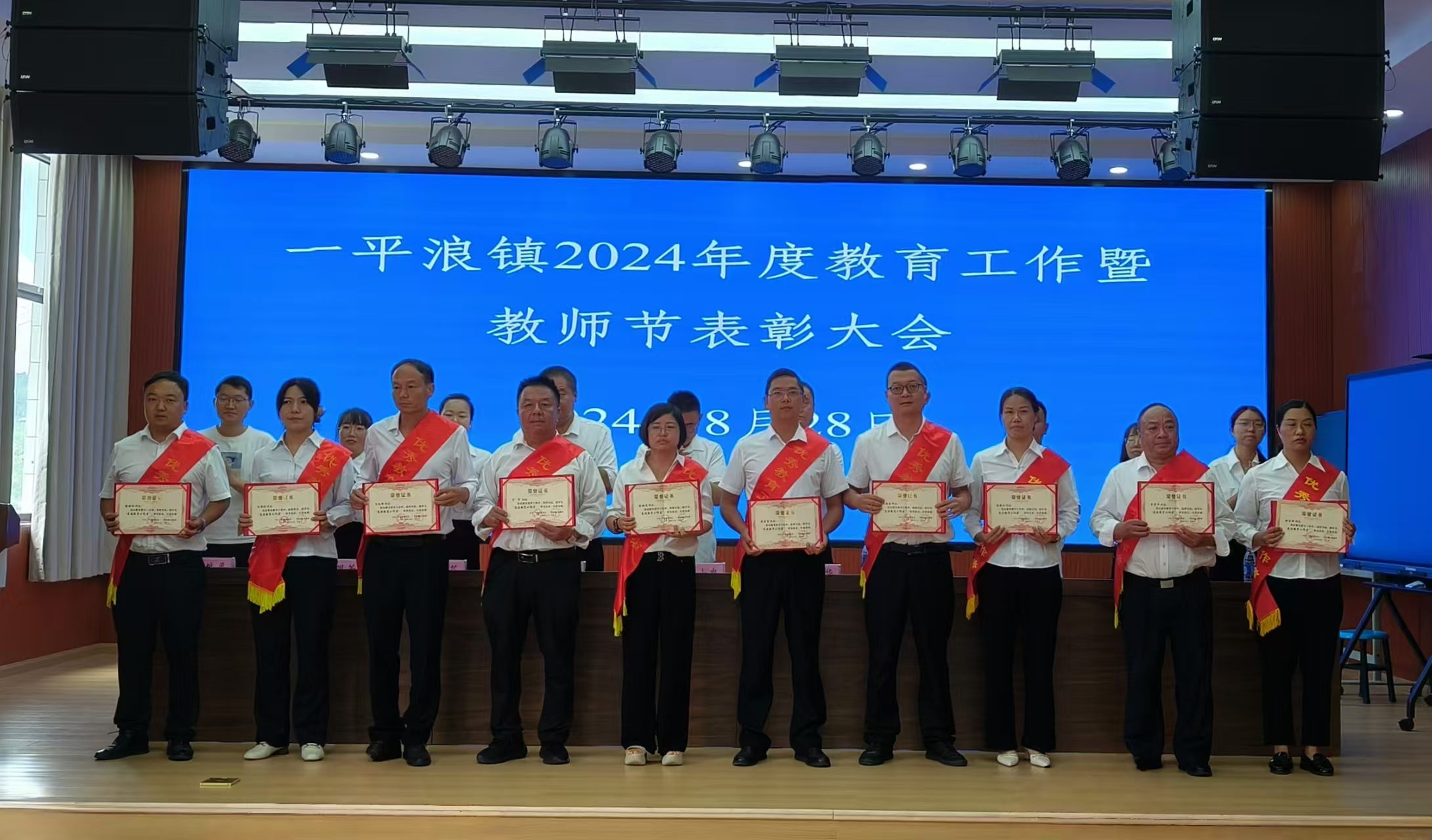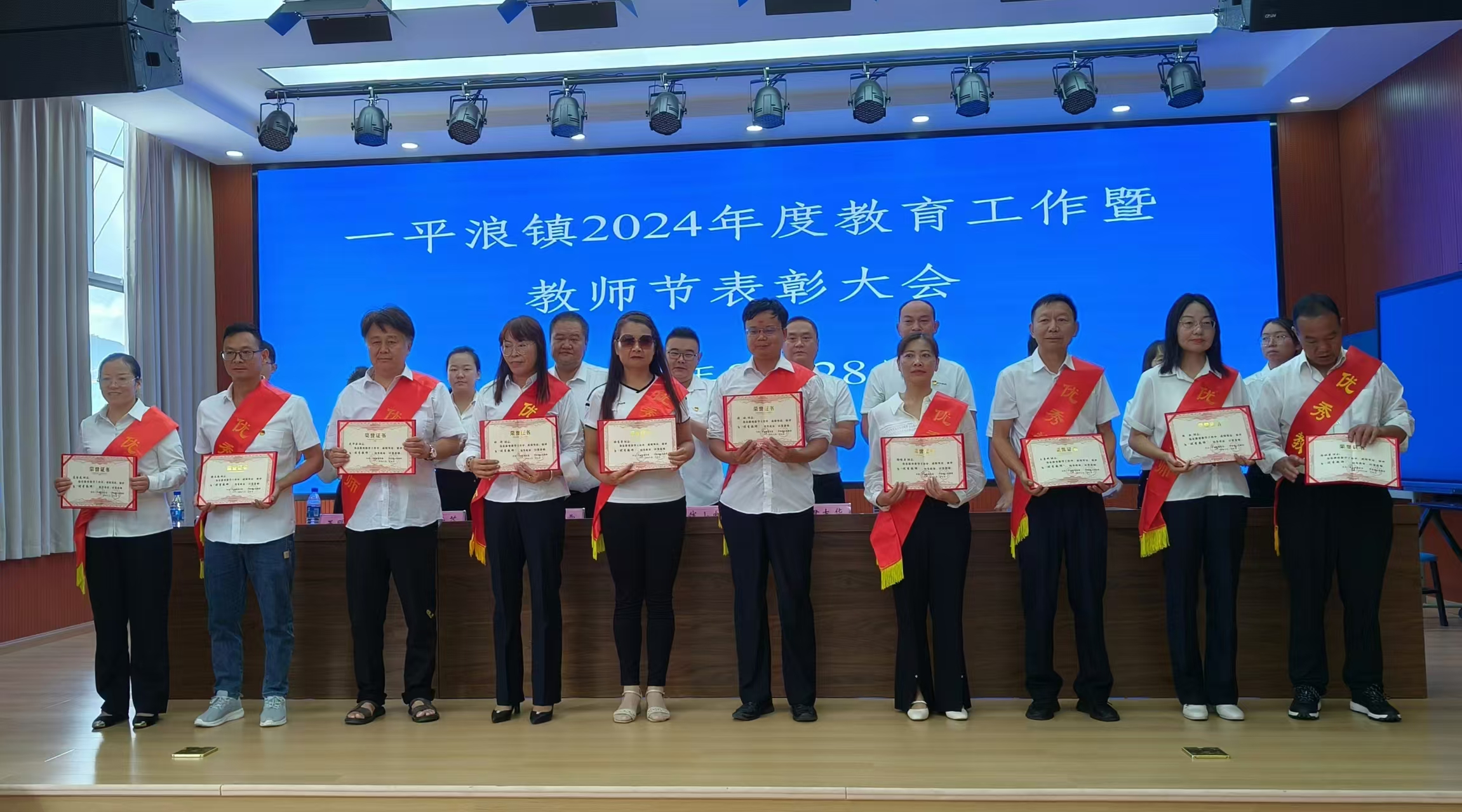 8月28日,一平浪镇召开2024年教育工作暨教师节表彰大会。会议表扬了19家捐资助学爱心企业、10名优秀教师、10名优秀班主任、10名优秀教育工作者,并对2024年小升初、初升高、高考取得优异成绩的56名一平浪籍学生进行表彰。