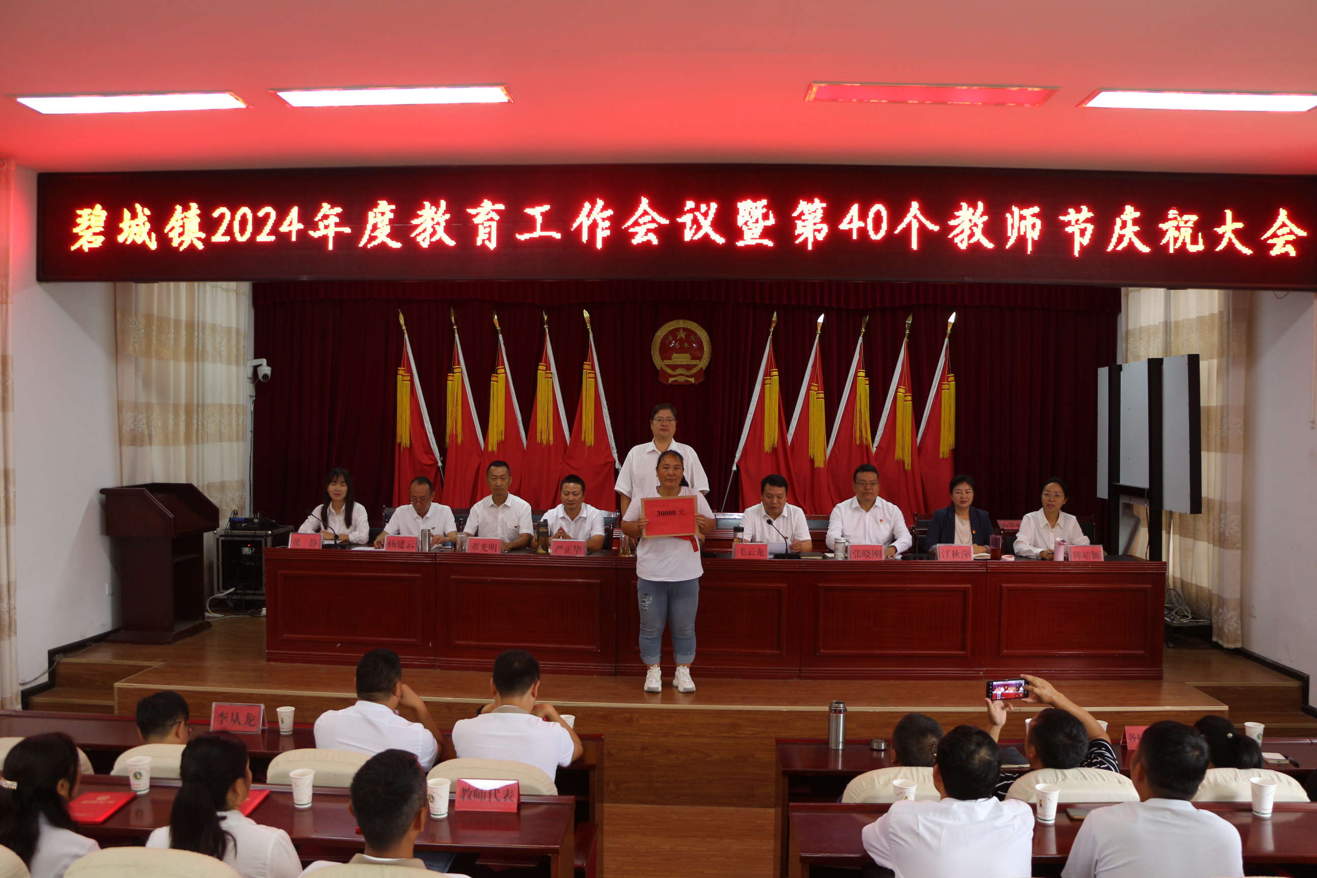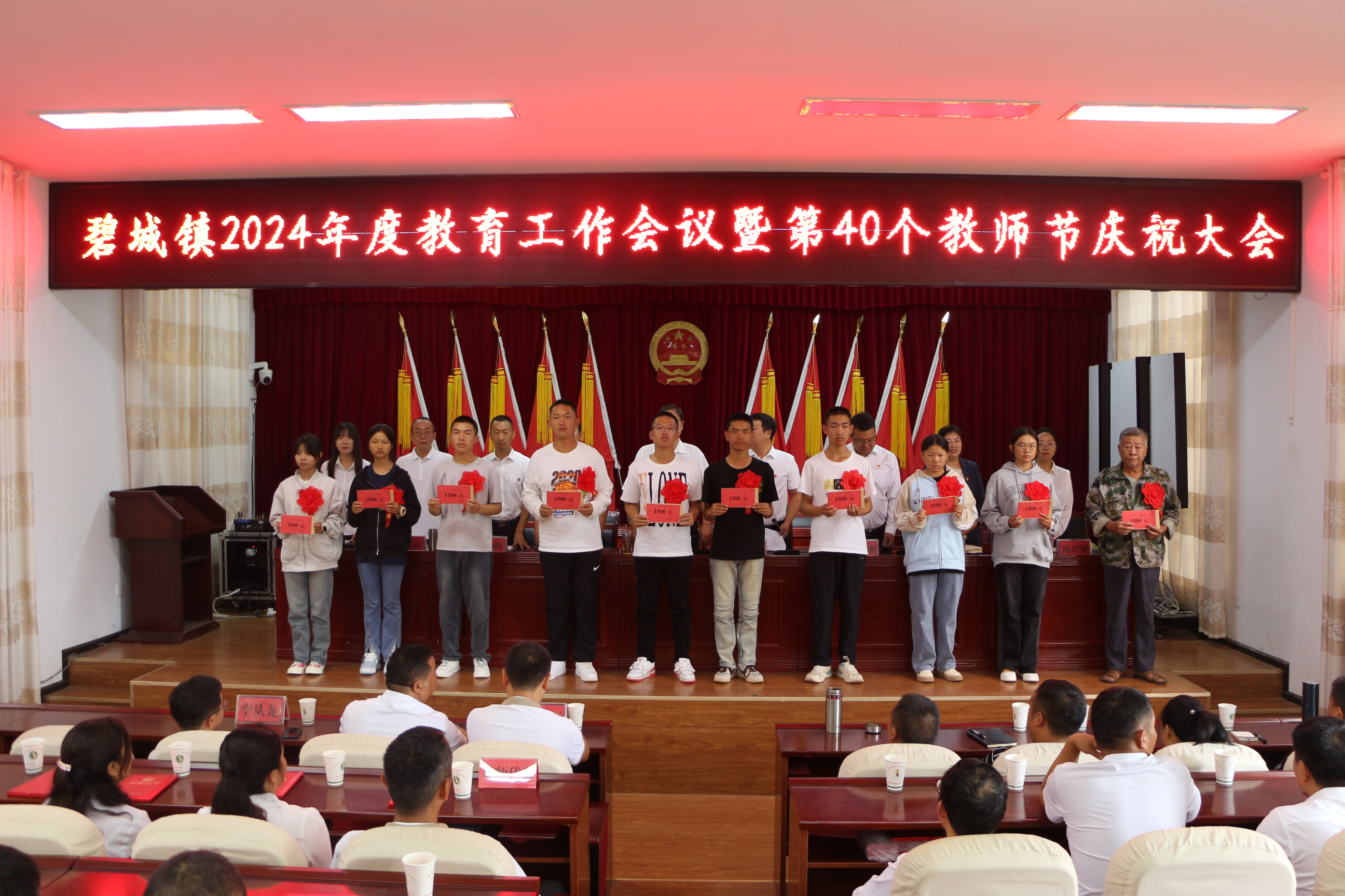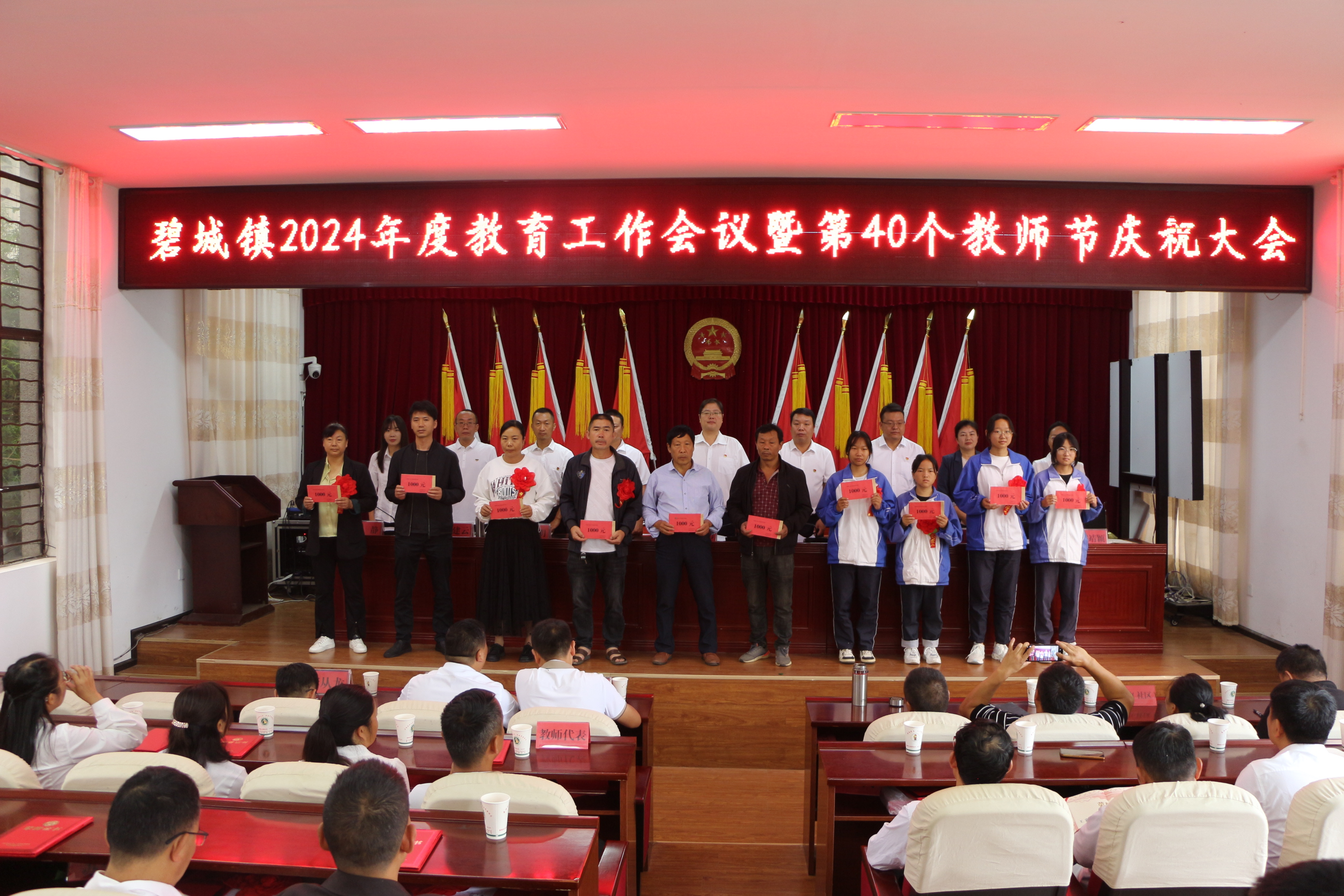 为进一步增强广大教师、教育工作者的荣誉感和责任感。9月5日,碧城镇组织召开2024年度教育工作会议暨第40个教师节庆祝大会,深入总结了全镇一年以来的教学工作,奖励先进,鼓舞斗志,有效推动了全镇教育事业高质量发展。