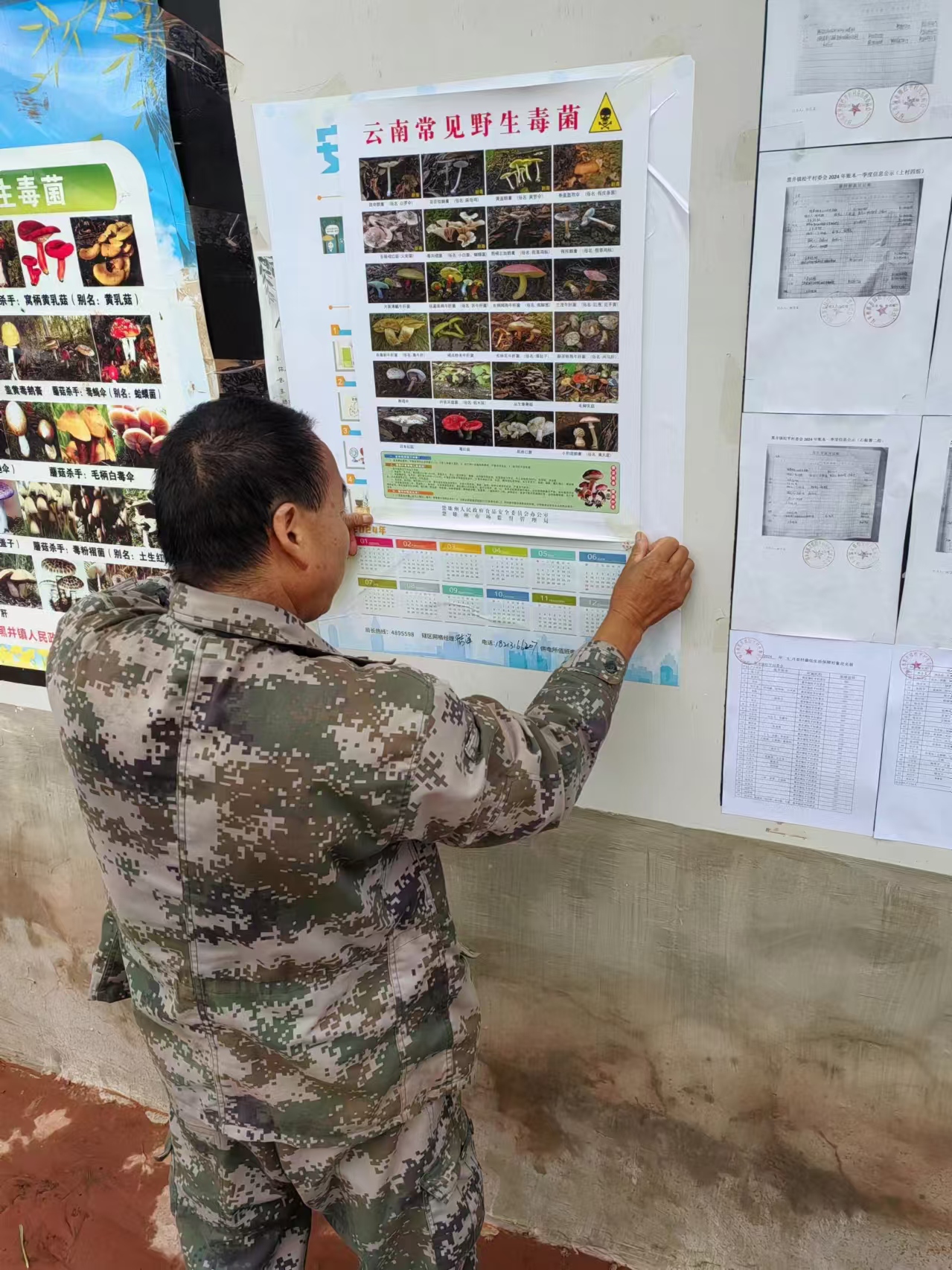 黑井镇采用“线上+线下”的方式广泛宣传普及野生菌中毒防控知识,利用微信村组群、微信公众平台、QQ群线上推送宣传;在集镇区集中发放资料讲解,食品安全协管员在村间公示栏粘贴海报、入户宣传、利用应急广播播放音频等方式进行线下宣传,强化群众对毒菌的鉴别、野生菌中毒时的症状与体征以及发生中毒后的自救和治疗等知识,提醒广大居民群众对野生菌一定要慎采、慎卖、慎买、慎烹、慎食。