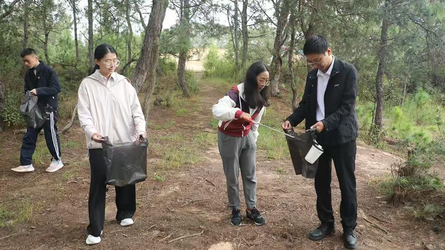 9月30日上午,在第十一个全国烈士纪念日来临之际,禄丰市中村乡机关党支部、乡团委、青年人才党支部在中村水库禄罗游击队烈士纪念碑开展“缅怀英雄先烈·弘扬红色精神”主题党日活动。深切缅怀革命先烈,在全社会大力弘扬爱国主义精神和英烈精神,共同庆祝新中国成立75周年。在烈士纪念碑周围,党员干部们纷纷拿起火钳、垃圾袋等工具投入到环境卫生整治工作中。大家细心地捡拾着游客扔弃在树林中的塑料袋、纸屑、饮料瓶等垃圾,清除烈士纪念碑周围的杂草,不放过任何一处角落。在大家的辛勤努力下,烈士纪念碑周围这片神圣的土地变得更加整洁、更加庄严。活动中,全体党员干部面容凝重,迈着坚定的步伐来到烈士纪念碑前,共同缅怀为国家独立、民族解放和人民幸福英勇牺牲的游击队员。在绿水青山环绕的烈士纪念碑前,党员们列队肃立,向烈士默哀。在领誓人的带领下,庄严地宣读入党誓词,向先烈们表达深切哀思和崇高敬意。中村乡社会事务办公室干部陈盈润说:“今天是全国烈士纪念日,通过参加活动,我将不忘初心、牢记使命,在今后的工作、学习、生活中,勇于担