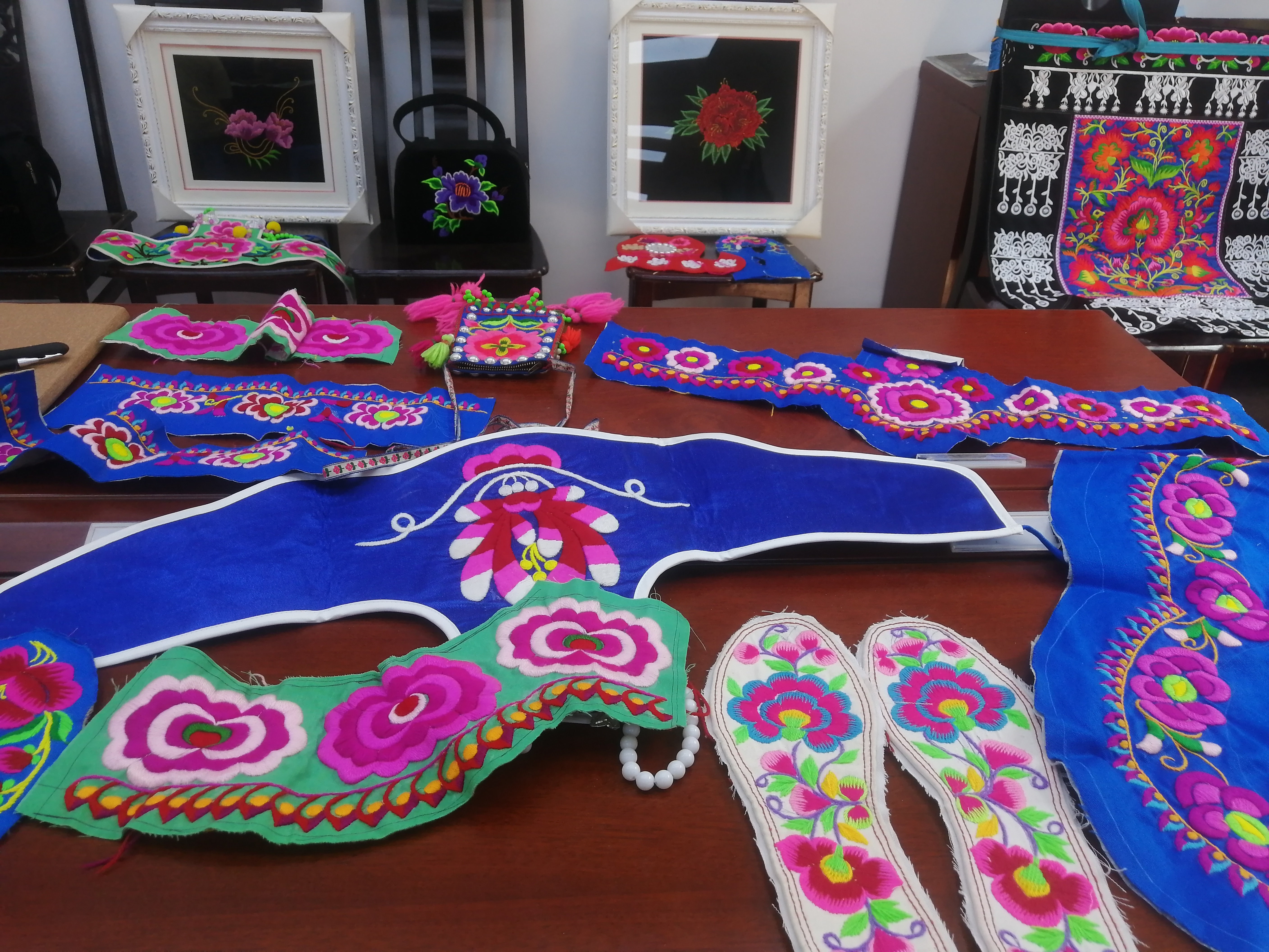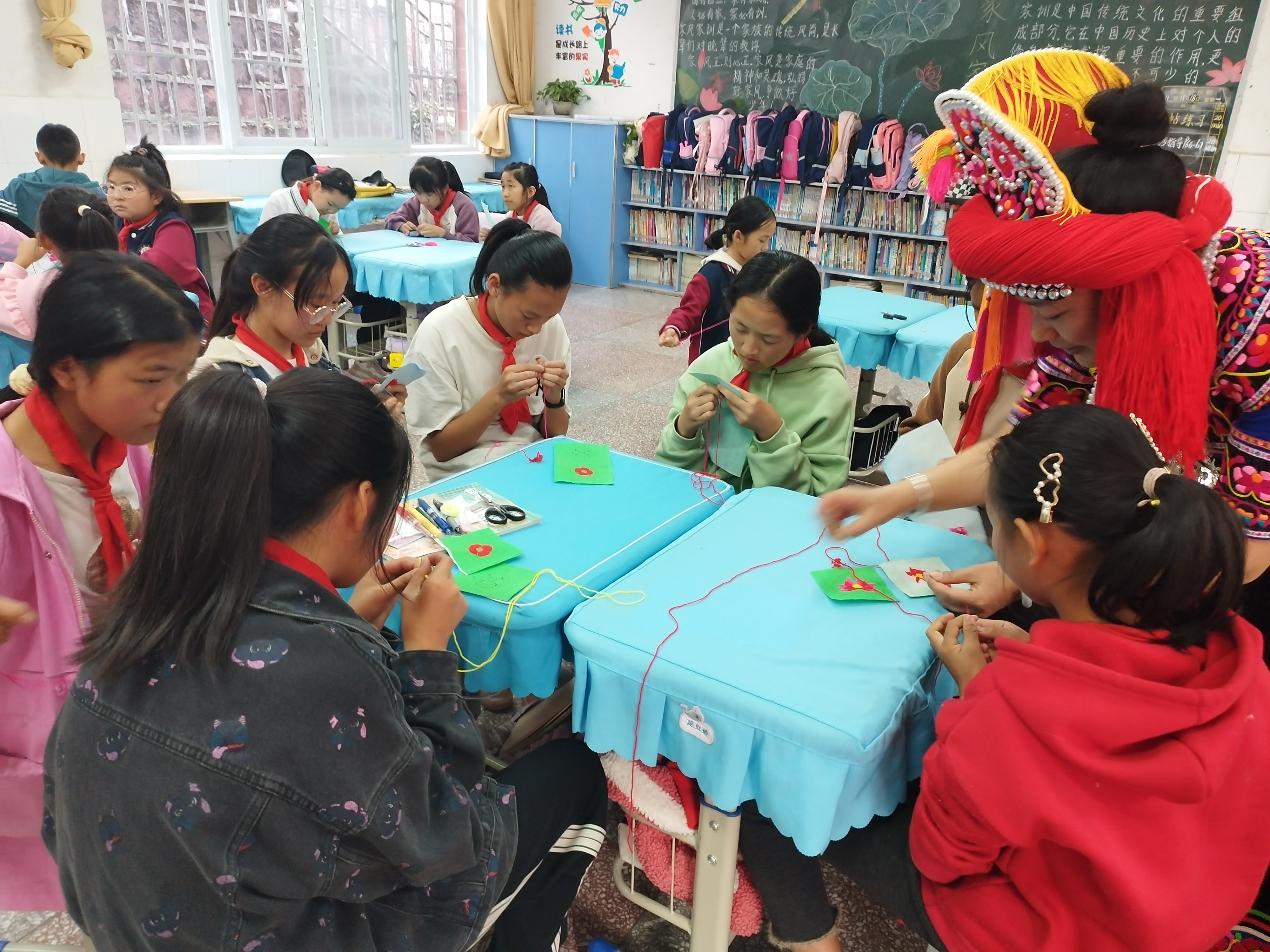 每到周三,孩子们课桌上摆的不再是书本和文具盒,而是针线和绣布;展柜里摆放着学生的手工刺绣作品,色彩丰富,散发着彝族文化的独特魅力。