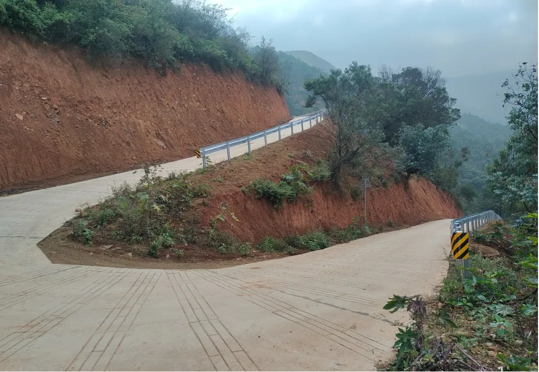 化伍箐、青地板村位于该镇东南方向,距该镇政府所在地12公里。2023年该地获得了楚雄州非重点帮扶县以工代赈项目中央财政衔接推进乡村振兴补助资金367万元,用于易地扶贫搬迁安置点基础设施配套乡村道路硬化工程建设,打通了西村至化伍箐、青地板两个村组6.33公里道路硬化工程。由于该地区地处山高坡陡地带,海拔最高达2426米,道路地形、地质条件复杂,急弯陡坡,临崖临坎路段多,道路硬件基础薄弱,等级低、安全防护配套率低,存在极大的交通安全隐患。