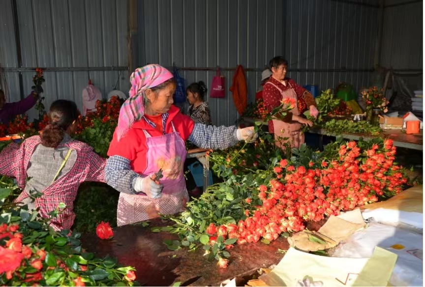 提供销售种苗、鲜花创收,当地村民流转、出租土地、务工就业增收双赢。中村乡花卉种植面积达1700余亩,在中村、河西村民委员会的中村、小磨房村、上村、下村、傈园新村等村民小组,当地村民到花卉企业务工人数达600余名,年务工总收入达1200余万元。对于一些要照顾老人、小孩和家庭的妇女、上了年纪的村民来说:拿着流转土地的租金,又在自家转让的土地上管理采摘鲜花,每月能挣到2000至3000多元不等的工钱。不仅照顾了老人和孩子,搞好了生产,还发展了家庭猪鸡、牛羊养殖。