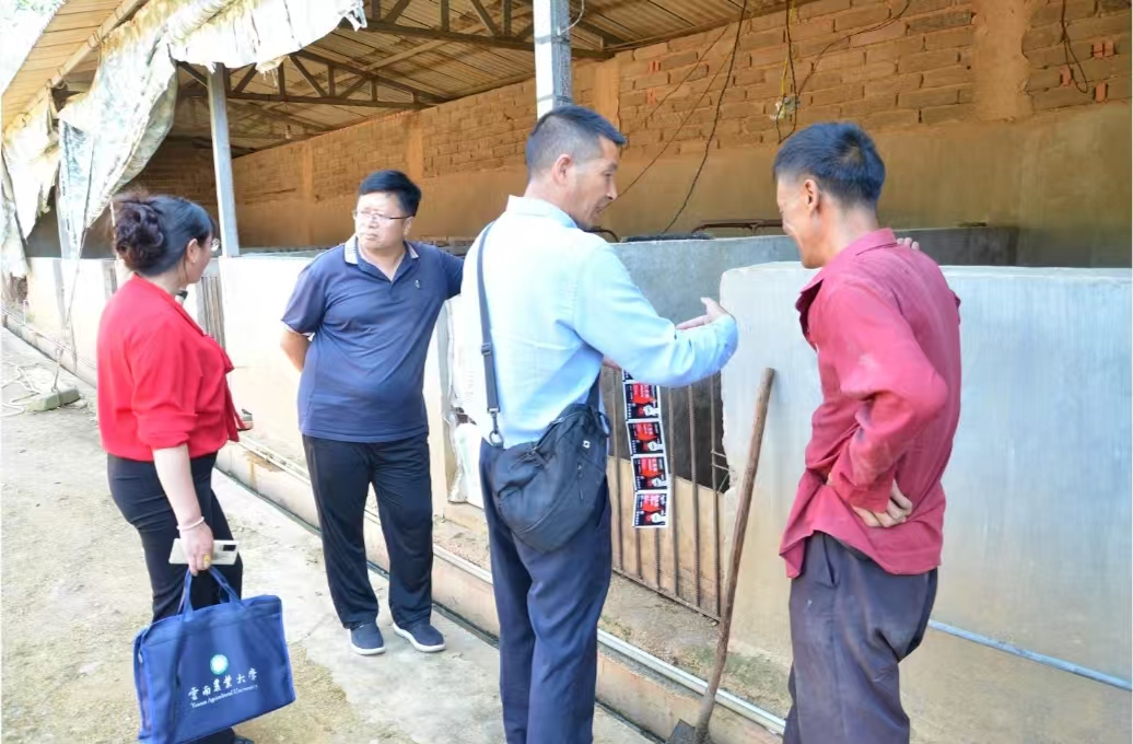 在培训现场,云南农业大学动物医学院肖啸专家基层科研工作站、禄丰市农业农村局畜牧兽医股专家科技特派团队技术人员通过图文并茂、理论结合实践经验,向参加培训的养殖户讲解了猪、牛羊优良品种、疾病预防治疗、饲料搭配、养殖技术讲解、管理指导服务,现场解答了养殖群众在养猪、养牛羊中遇到的疾病、预防管理等问题。在培训期间,专家成员深入到养殖户了解猪、牛养殖情况,开展科技养殖管理指导服务。