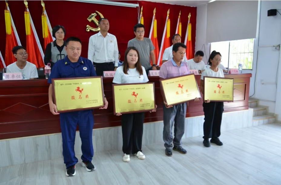 评比表彰通报了2023年市对乡大比拼考核结果,宣读《中共中村乡委员会中村乡人民政府关于授予2023年度大比拼“骏马奖”“蜗牛奖”的通报》,分别为获得“骏马奖”和“蜗牛奖”的站(所)和村委会颁发了奖牌。