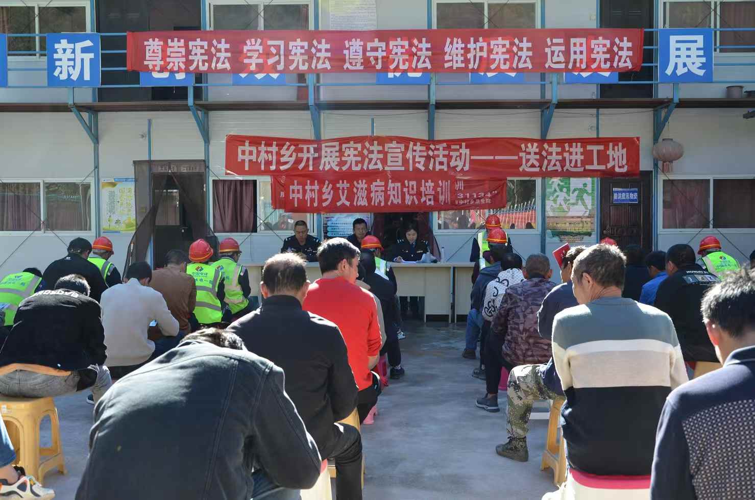 为深入学习宣传习近平法治思想,弘扬宪法精神,增强农民工法治意识,引导农民工依法维护自身合法权益。近日,在第十一个国家宪法宣传日来临之际,禄丰市中村乡组织司法、公安、安监等站(所)深入中国水电一局滇中引水工程楚雄段施工7标项目部鲁支河工区开展“法治宣传进工地”活动。