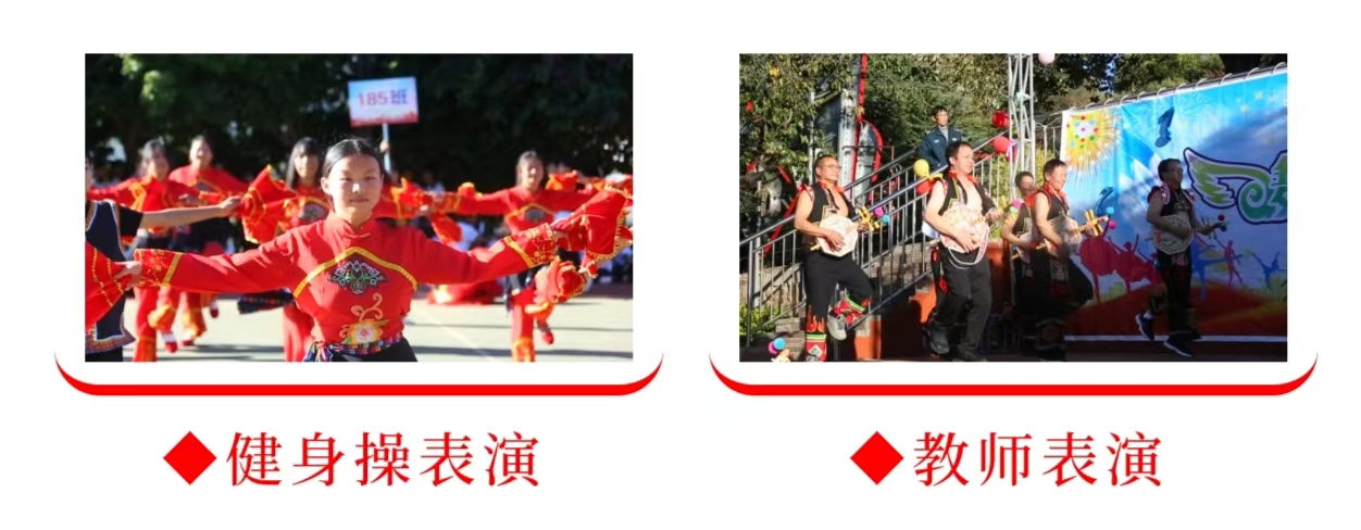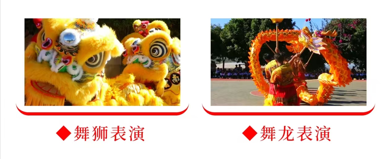 在开幕式上,各班以独特的舞蹈语言和创新的舞蹈形式,向大家展示了舞蹈文化的魅力和活力。龙狮社团的同学们伴随着激昂锣鼓声,龙狮翻腾跳跃,尽显欢乐祥和氛围。健身操社团的同学们身着民族服装翩翩起舞,用灵动的舞姿诠释活力。教师舞蹈社团的老师们伴着左脚舞音乐《阿老表你要来尼嘎》跳起民族舞蹈,将开幕式推向高潮。