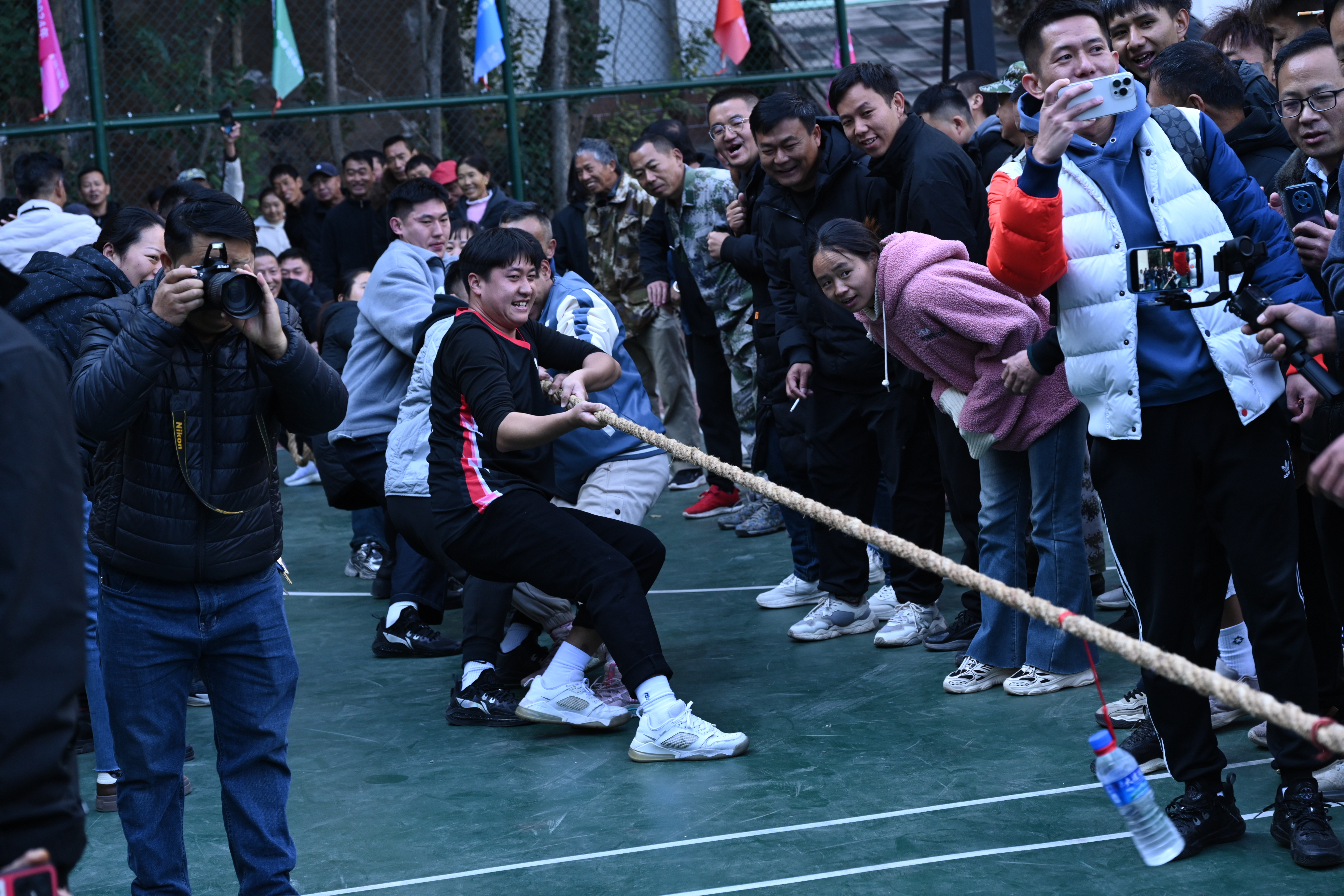 拔河比赛是力量和激情的碰撞。随着一声响亮的哨声,拔河比赛正式开始。参赛的双方队伍迅速进入状态,他们双脚用力蹬地,身体后倾,双手紧握麻绳,仿佛要将全身的力量凝聚在这一刻。随着比赛进入白热化,麻绳中间的红绸来回摆动越发频繁,双方的斗志也越发昂扬,围观群众情绪高涨,加油呐喊声一阵高过一阵。