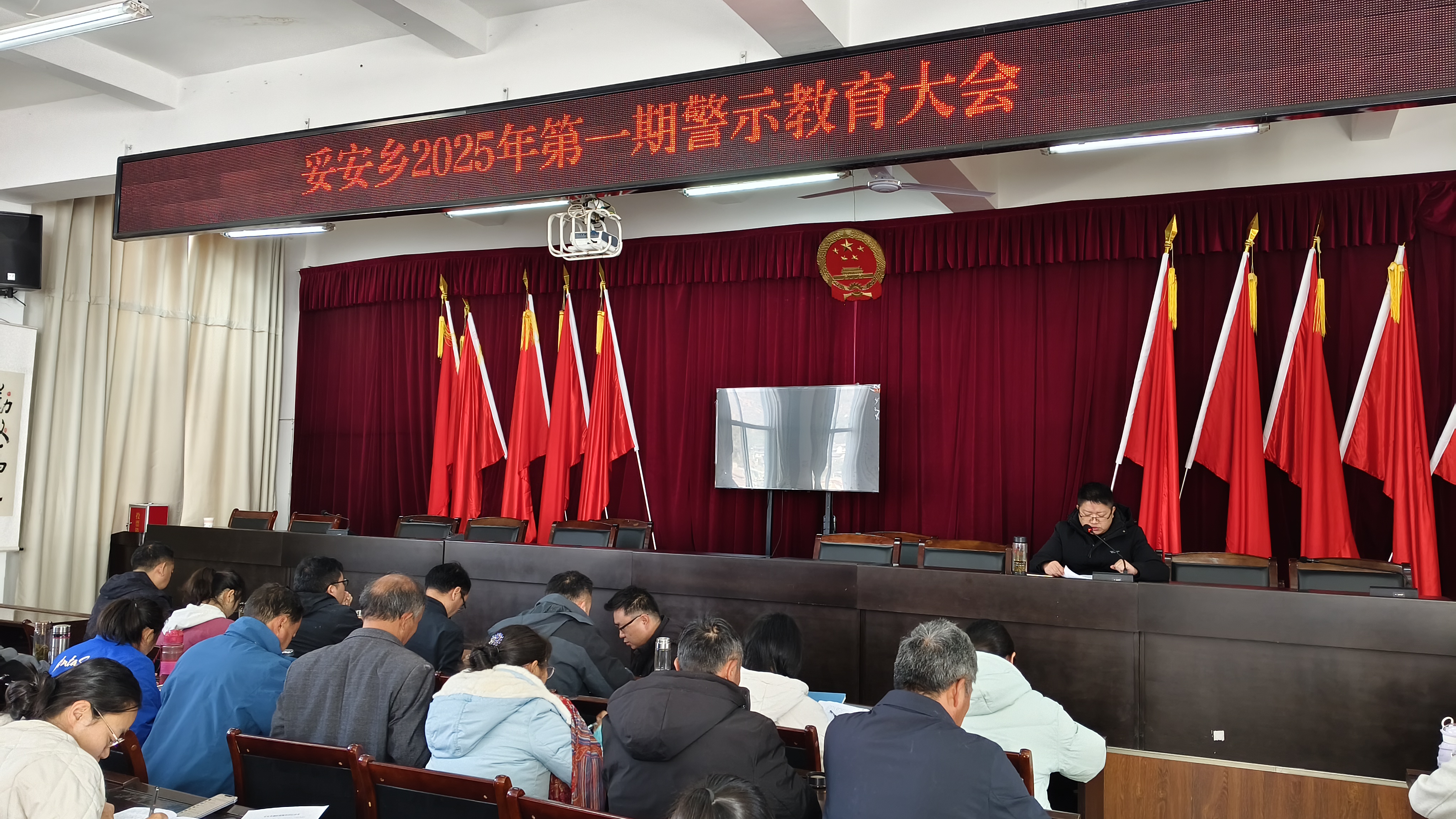 新春将至,妥安乡召开节前集体廉政提醒谈话暨2025年第一期警示教育大会。乡党委书记金蕴秋主持会议并讲话。