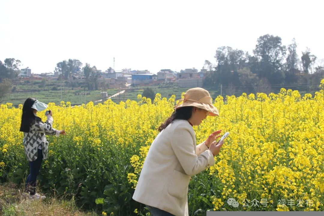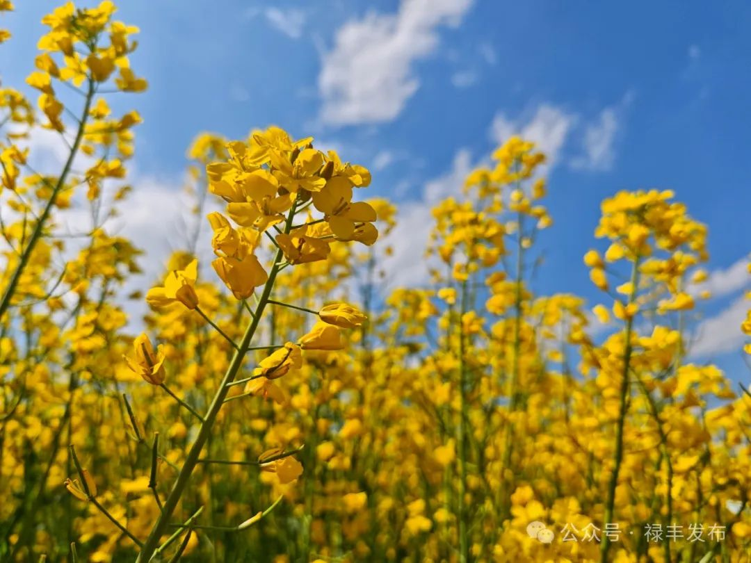 随着气温逐渐回暖,楚雄彝族自治州禄丰市仁兴镇的油菜花竞相绽放。金黄的花海成了春日里一道亮丽的风景线,大片金黄的油菜花田,吸引了众多游客前来观赏“打卡”。