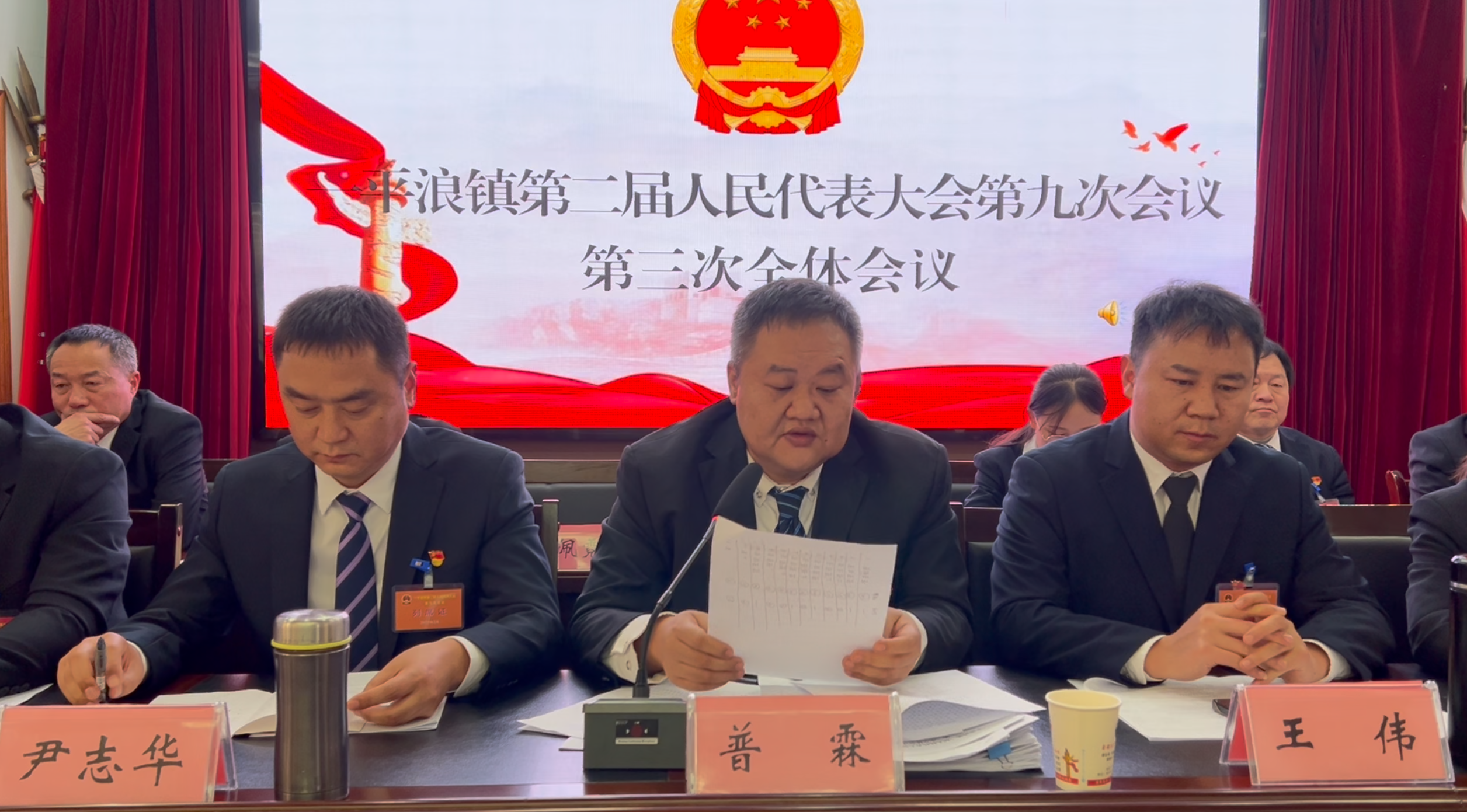 会议听取和审议了镇人民政府镇长尹志华所作的政府工作报告和镇人大主席普霖所作的镇人大主席团工作报告。