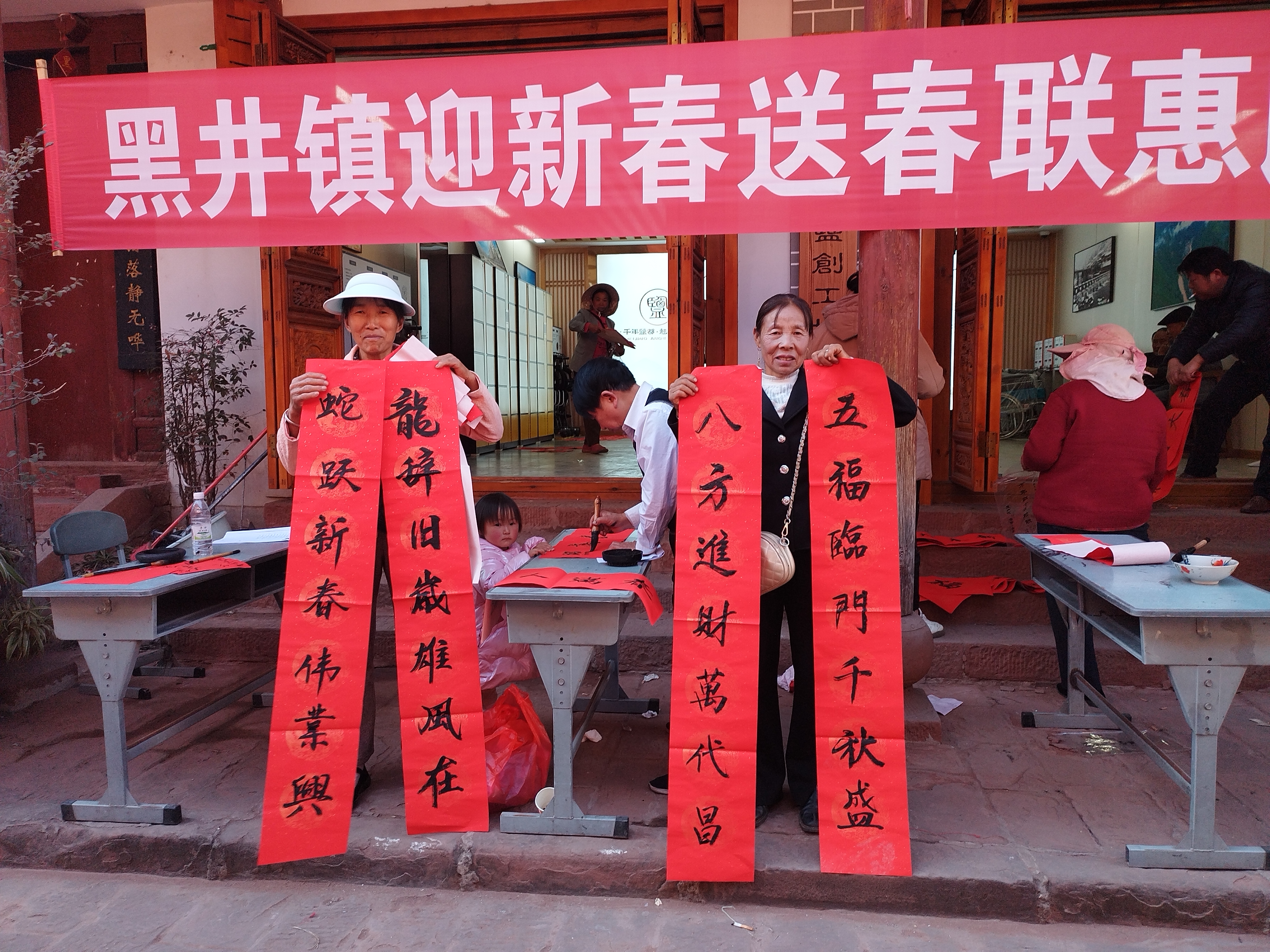 在本次活动中,这些抢手的“文化年货”受到了广大群众的一致好评,送出的100余幅福字、200余副春联,不仅为大家送上了新春的祝福,更让群众近距离领略到书法艺术的魅力所在,使得优秀传统文化在黑井古镇得到更好的传承和弘扬。