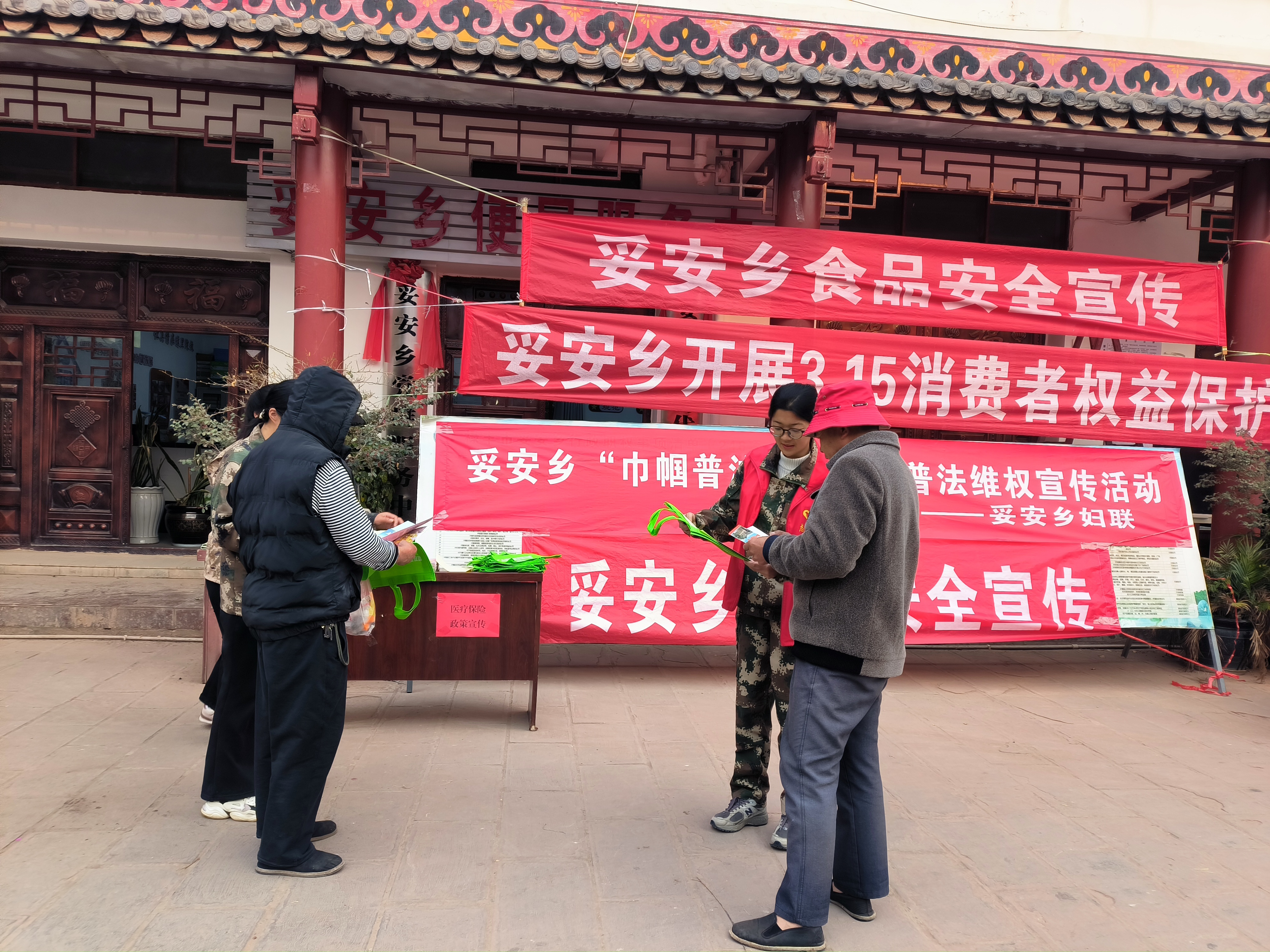 为深入贯彻落实党的二十大精神,切实维护妇女儿童合法权益,提升辖区妇女群众依法维权能力,在2025年“三八”维权宣传月,及第43个“3·15”国际消费者权益日来临之际,妥安乡妇联、妥安司法所、妥安派出所、妥安市场监督管理所及党群服务中心等部门,于3月14日上午在妥安乡集镇联合开展普法维权宣传活动,通过“精准普法、多元服务”推动法治观念深入人心。
