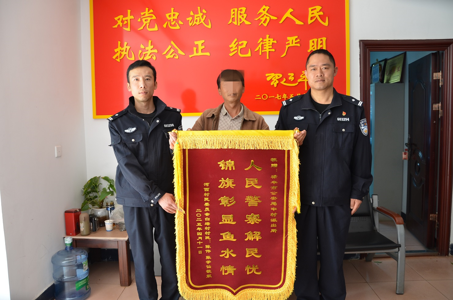 人民警察在遇到失联突发事件时及时提供技术支持、帮助搜寻,为民排忧解难,失联人家属自发地向派出所送上深表谢意的锦旗,表达对人民警察的感激之情。