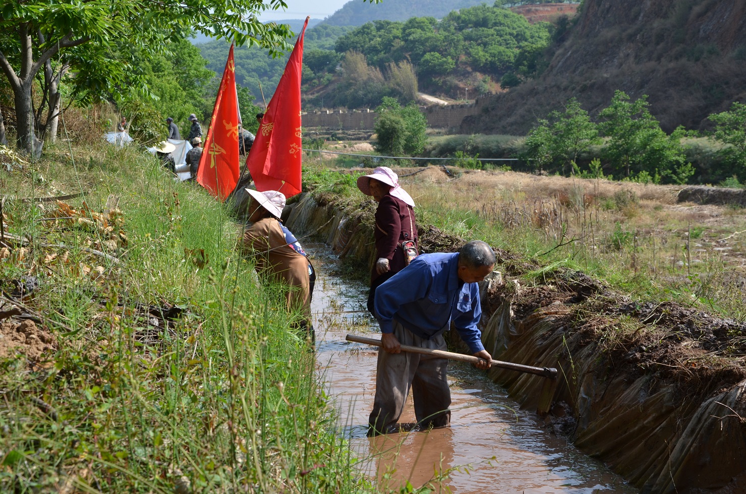 河脑坝沟全长7000余米,是一条有百年历史的土沟渠,灌溉面积1000余亩。就在几天前,小洼子100余米长的沟渠发生整体陷落,导致沟渠出现坍塌。在急需春耕用水的情况下,村委会及时组织村组干部和群众采取清除沟渠泥沙杂物、堆筑沙包护沟埂、铺塑料薄膜防沟渠渗漏等临时方式保障沟渠正常通水。在现场参加抢修的河西村委会党总支书记李东林说:“大沟坍塌以后,村组干部及时组织群众一起来抢修,保障大春生产正常用水。”