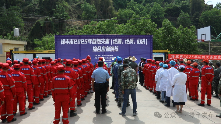 4月27日,禄丰市人民政府组织市级部门和14个乡镇,开展了2025年自然灾害(地震、地质、山洪)综合应急演练,增强防灾减灾救灾能力。演练模拟中村乡阿勒村委会白石岩村发生6.4级地震,地震引发地质和山洪自然灾害。中村乡人民政府及时向市人民政府汇报灾情,并组织阿勒村委会白石岩村群众有序撤离到安全地带。禄丰市人民政府接到灾情报告后,迅速启动应急预案,成立前方抗震救灾指挥部,搭建好受灾群众安置点、医疗救护点、学生上课地点等场所。市级地震、水务、公路、通讯、电力、医疗卫生、蓝天救援队迅速赶往阿勒村委会白石岩村展开救援。