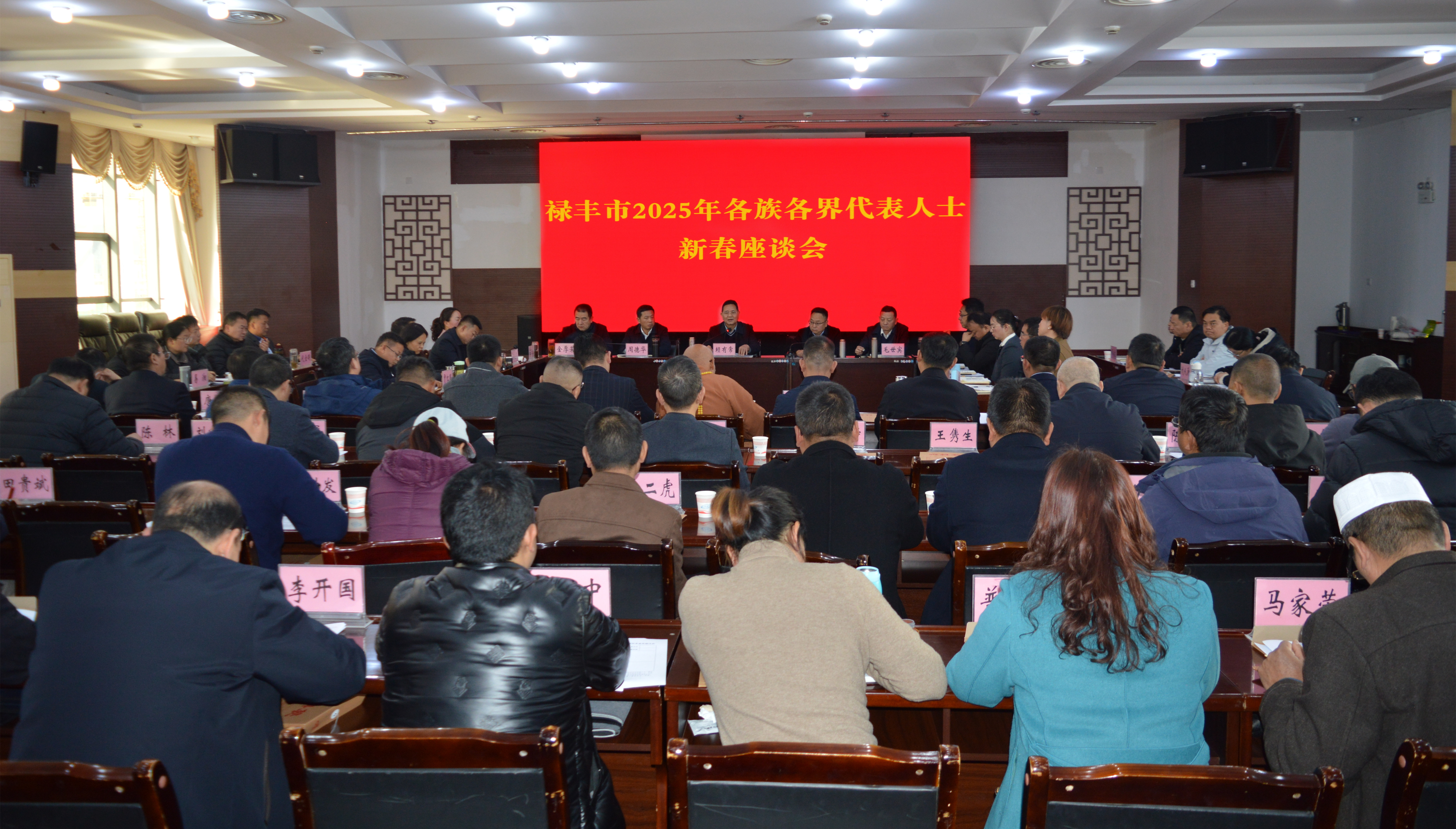 1月14日,禄丰市召开各族各界代表人士2025年新春座谈会,禄丰市四套班子领导与全市各族各界代表人士欢聚一堂,共叙友谊、共话发展、共迎新春。