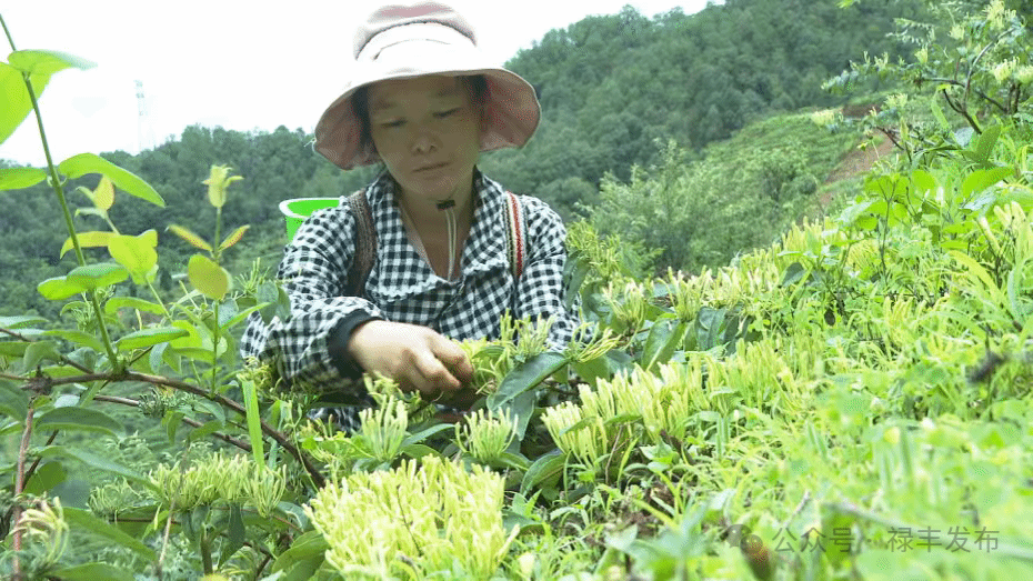这段时间正是金银花盛开的时节,在楚雄英武科技有限公司中村乡七峰村委会的金银花规范化示范种植基地上,村民们正忙着采摘金银花,这些花采摘后由总公司以市场价进行收购后直发制药机构。2023年3月,楚雄英武科技有限公司投入500万元资金在中村乡七峰村委会流转了约500亩林地在林下种植金银花,种植规模为450亩9万余株。