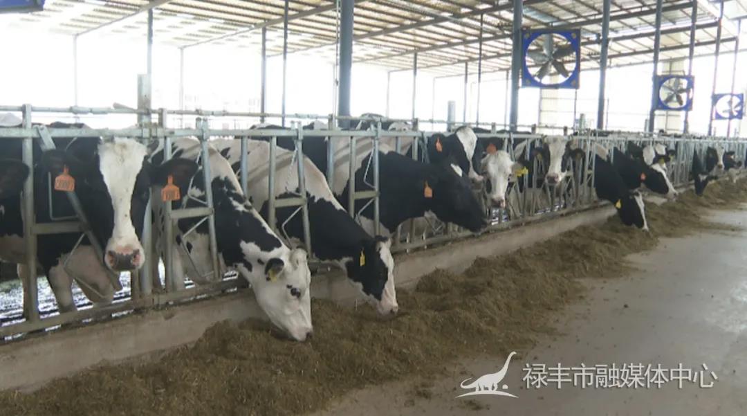 云南禄和智生牧业有限公司董事长郭树发说:我们有500多头牛,今年的收购青储(饲料)量这一块,我们是2万吨的青储(饲料)收购。每一亩下来我们测产就是5.5吨到6吨,基本上要5000多亩土地,然后跟着我们种植青储饲料,还有整个牧场(养殖)起来总共是6000头牛,6000头牛一年要7万吨青储玉米,然后要20万吨青储饲料,所以整个和平镇它的土地只能是跟着我们在做好奶牛吃的这一个服务。