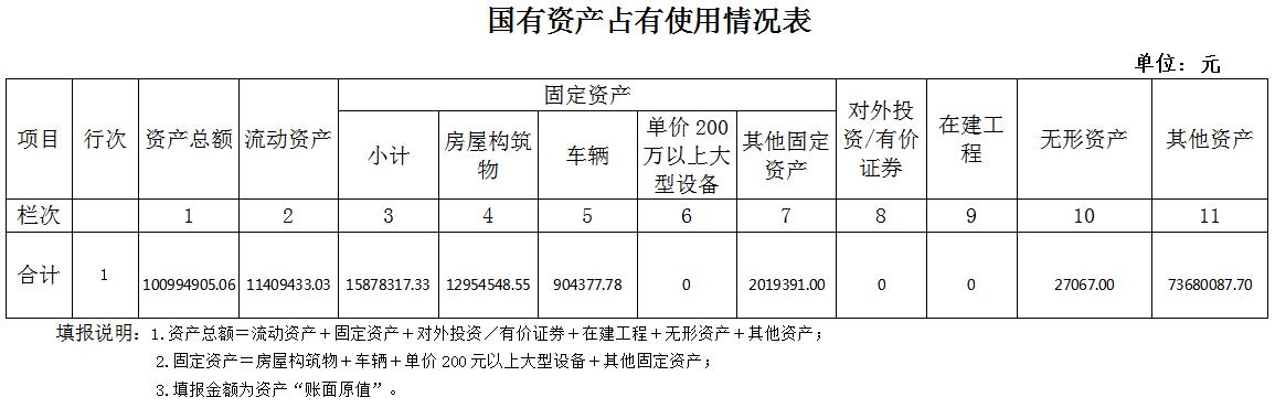 截至2021年12月31日,楚雄州禄丰市和平镇部门资产总额100,994,905.06元,其中,流动资产11,409,433.03元,固定资产15,878,317.33元,对外投资及有价证券0元,在建工程0元,无形资产27,067.00元,其他资产(公共基础设施)73,680,087.70元,(具体内容详见附表)。与上年相比,本年资产总额增加69,310,795.78元,其中固定资产增加2,471,279.83元。处置房屋建筑物0平方米,账面原值0元;处置车辆0辆,账面原值0元;报废报损资产0项,账面原值0元,实现资产处置收入0元;出租房屋0平方米,账面原值0元,实现资产使用收入0元。