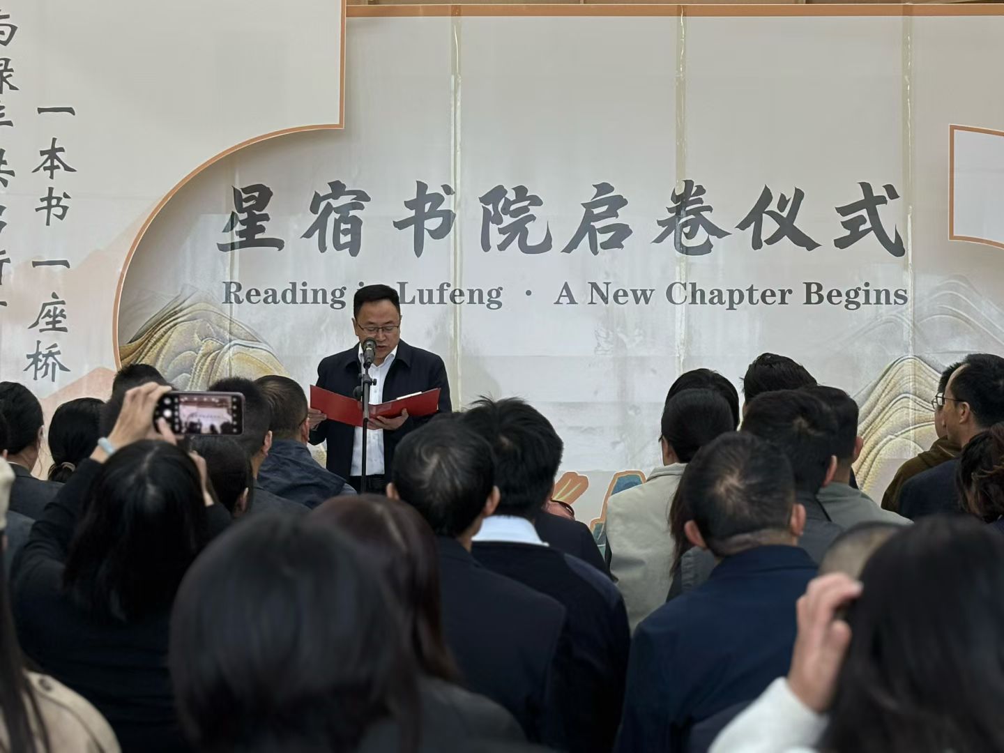 10月26日上午,禄丰市在星宿公园举行星宿书院启卷仪式,经过半年的建设,崭新的星宿书院正式免费向公众开放。这标志着禄丰市区又一文化新地标正式落成并向公众免费开放,为“书香禄丰”建设增添了浓墨重彩的一笔。市委书记赖有常,市委副书记、市长窦小军共同为书院揭牌,市级相关领导、各机关单位职工代表及热爱阅读的市民共计200余人参加了仪式,共同见证了这一文化盛事。