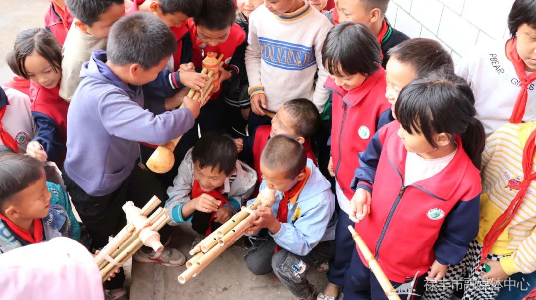 “这个乐器怎么和芦笙不一样呀?这是新的芦笙吗?”“小朋友这个不是芦笙哦,这个是葫芦笙,是我们傈僳族的乐器。”此次活动中,非物质文化遗产(傈僳族打跳)项目代表性传承人张文选也来到校园中,为孩子们展示傈僳族传统葫芦笙吹奏和舞蹈打跳文化。在悠扬的“笙”音中,孩子们在操场上围起圈来、跳起舞来,现场充满了欢声笑语。