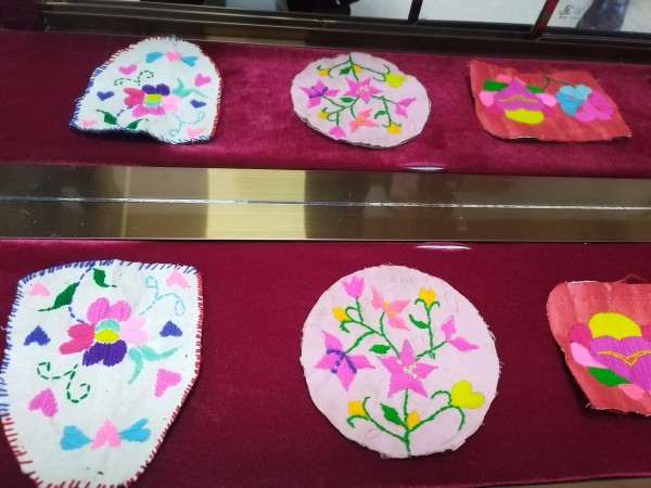 “我的奶奶、妈妈、姑妈都会绣花,我从小就看着她们绣,觉得很漂亮,我很喜欢,但是不太会绣,今年有彝绣兴趣班,我就参加了,觉得挺有趣的,我已经绣了好几朵花了。”黑井小学六二班的王梅静边展示她的作品边说道。每到周三,孩子们课桌上摆的不再是书本和文具盒,而是针线和绣布;在学校展柜里,学生的手工刺绣作品,色彩丰富,散发着彝族文化的独特魅力。