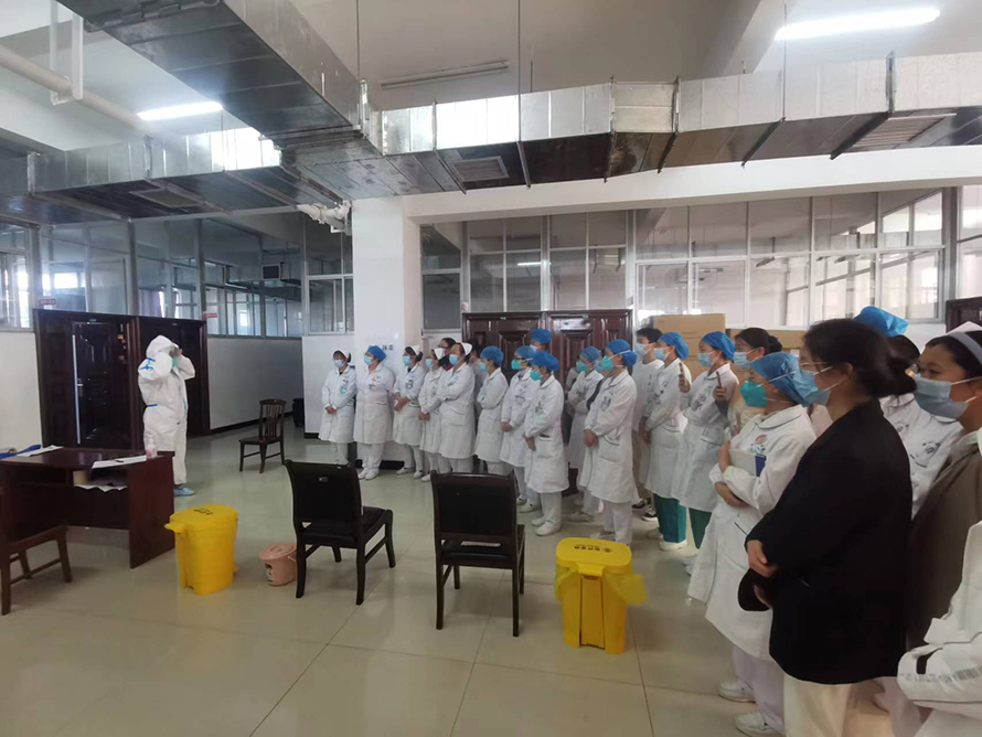 医院出台新冠肺炎培训方案和制度,多次对全市卫健系统抽调预备上前线的100余名医务人员开展全方位的防控培训,保证一线工作人员和靠前服务职工掌握相关知识,提高大家的自我防范和保护意识,有效开展相关工作,规范做好疫情防控。