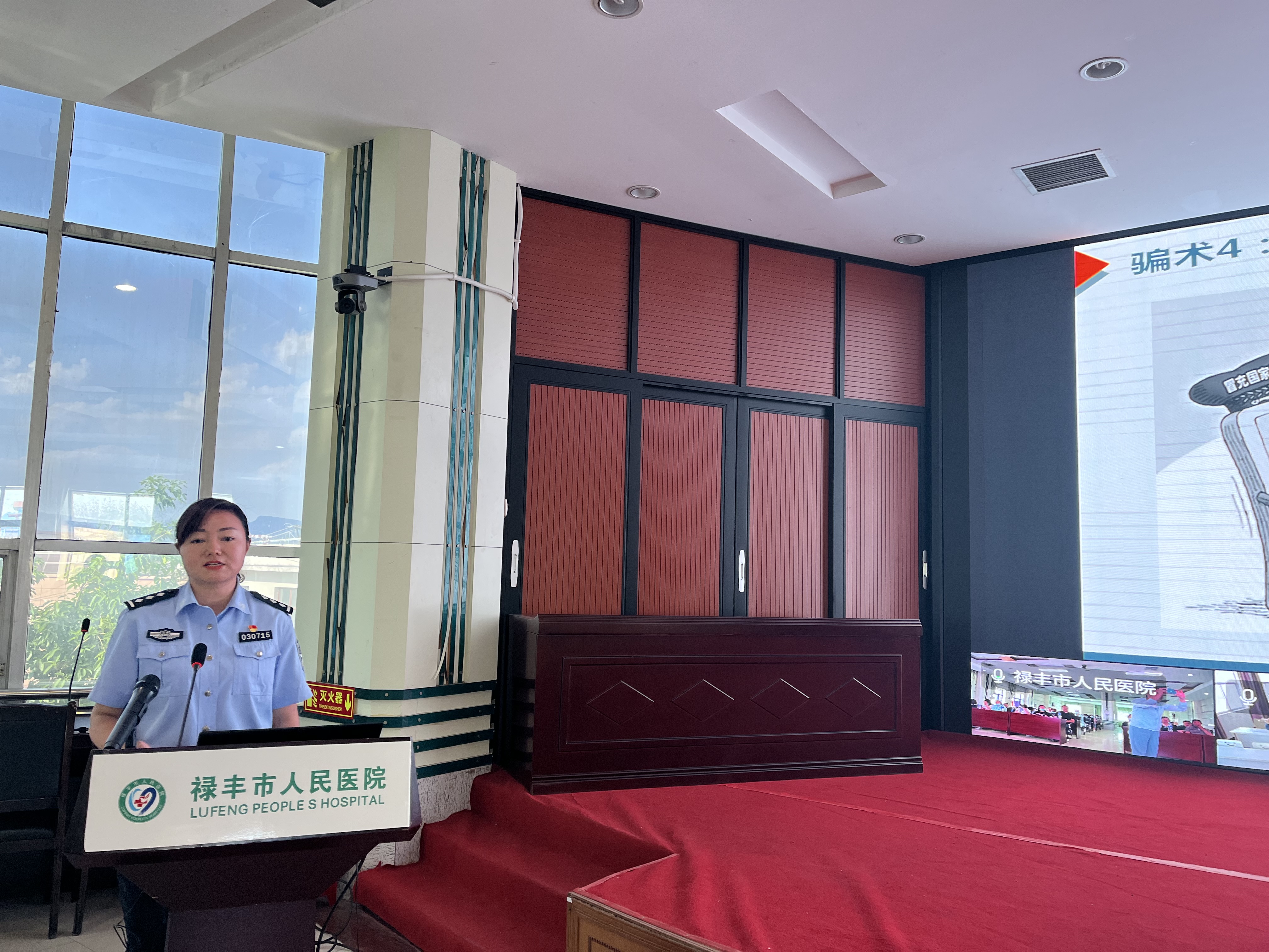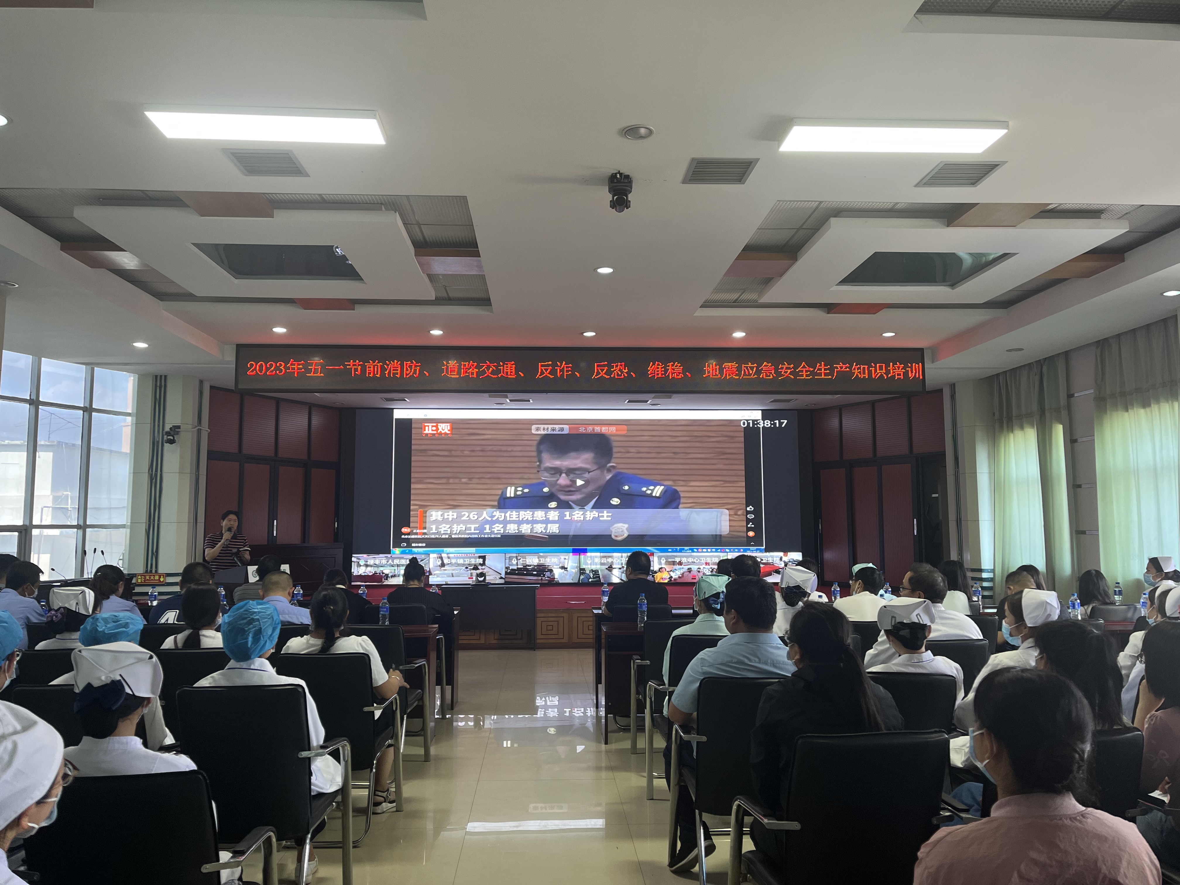 2023年4月27日下午,禄丰市人民医院特邀请市公安局、消防应急救援大队领导到医院开展以“防风险 保安全 护航高质量发展”为主题的消防、道路交通、反诈、反恐、维稳、地震应急安全生产知识培训,会议由医院副院长王忠文主持,全院100余名干部职工参加培训。